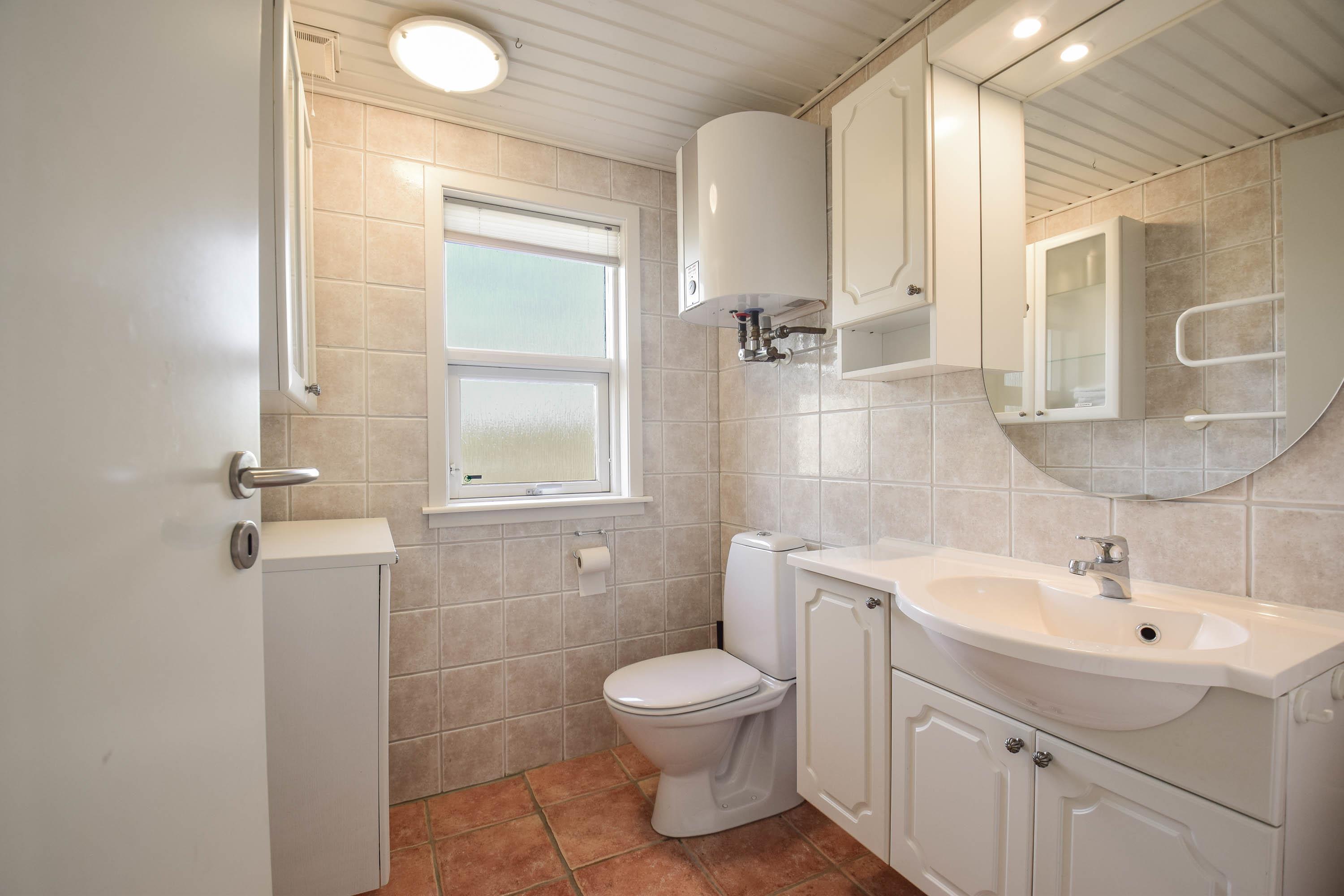 Et stort badeværelse med rummelig bruseniche samt vaskemaskine og tørretumbler gør ferien ekstra bekvem, og det praktiske gæstetoilet er perfekt, når man er flere afsted.