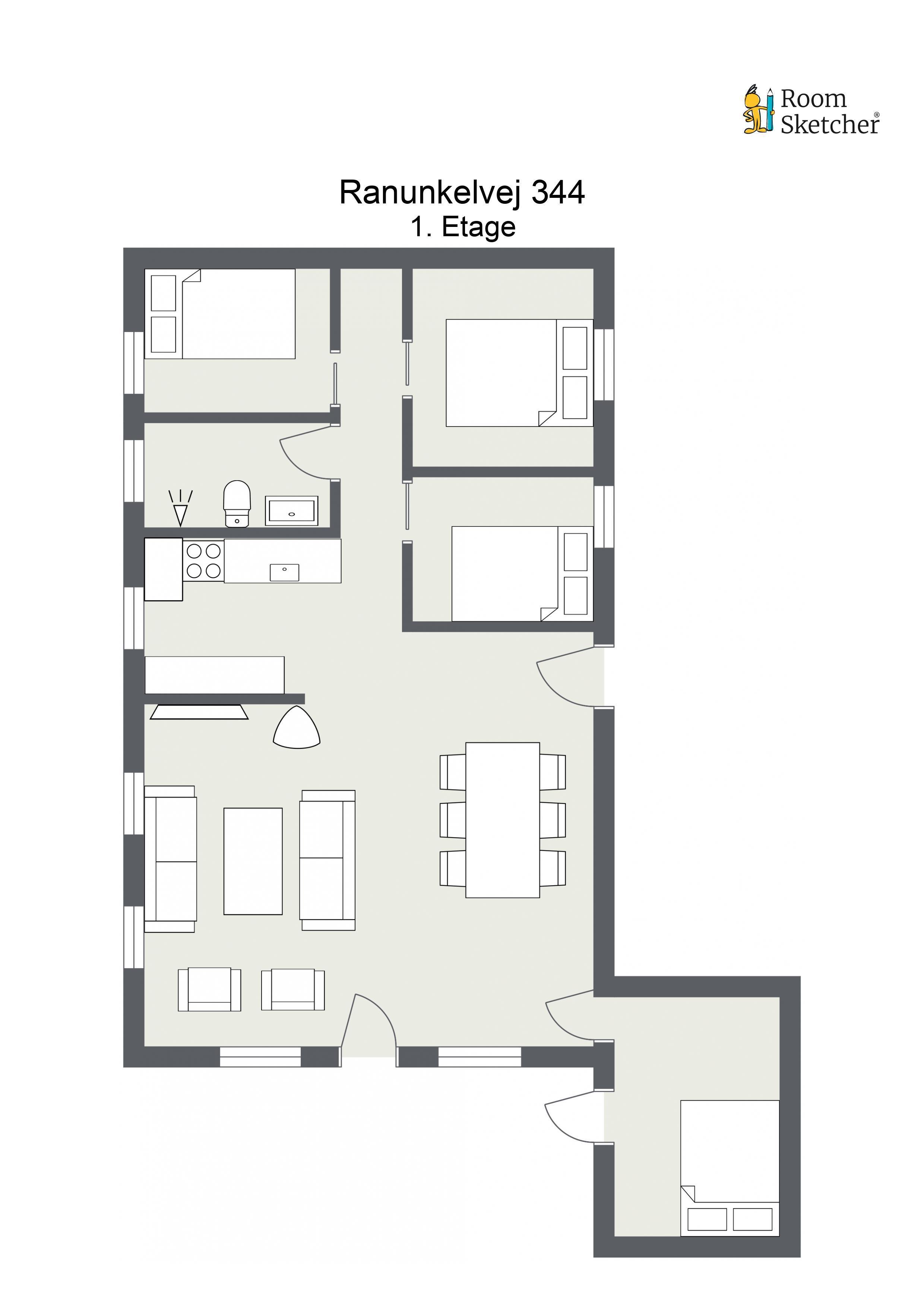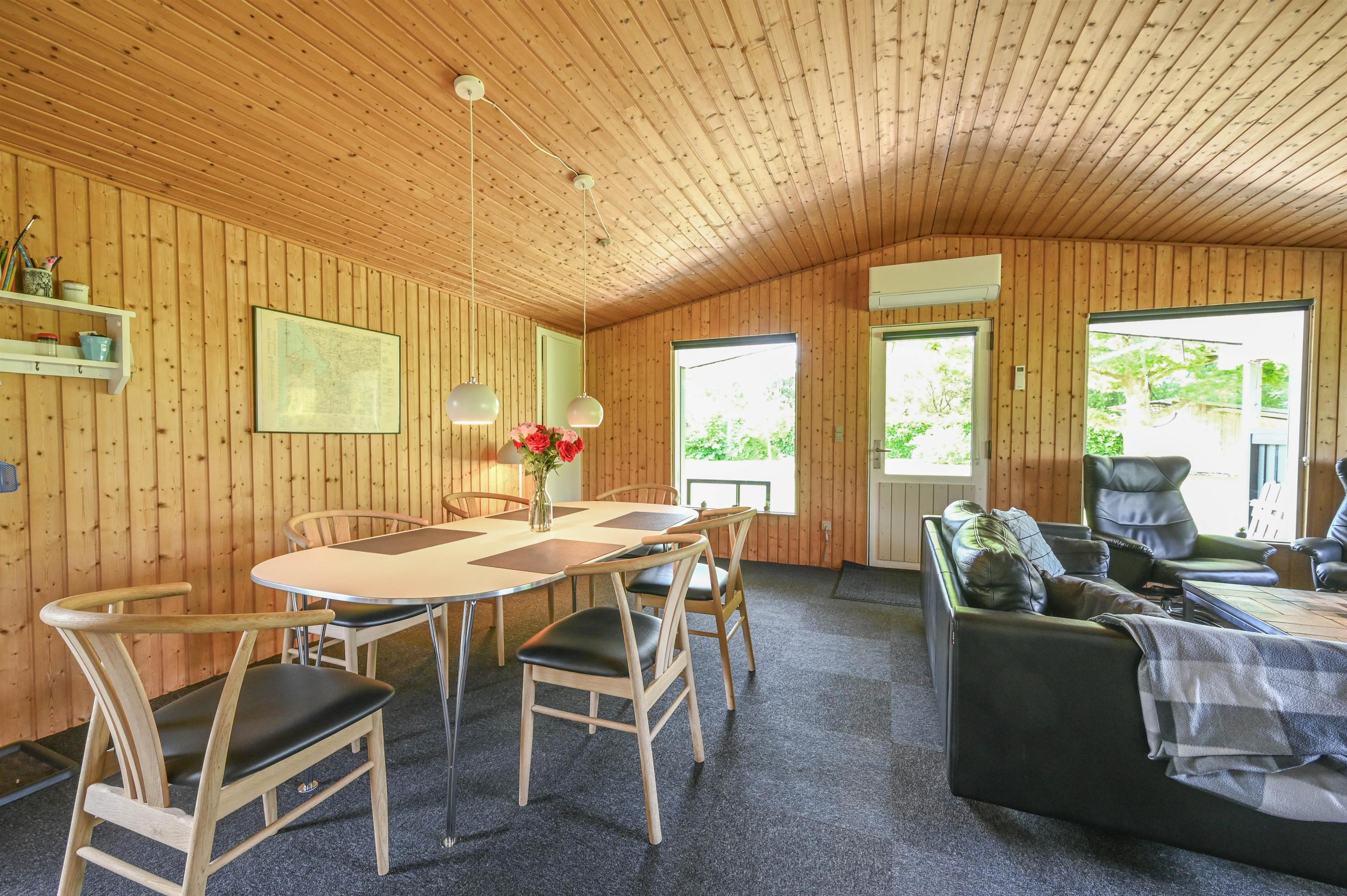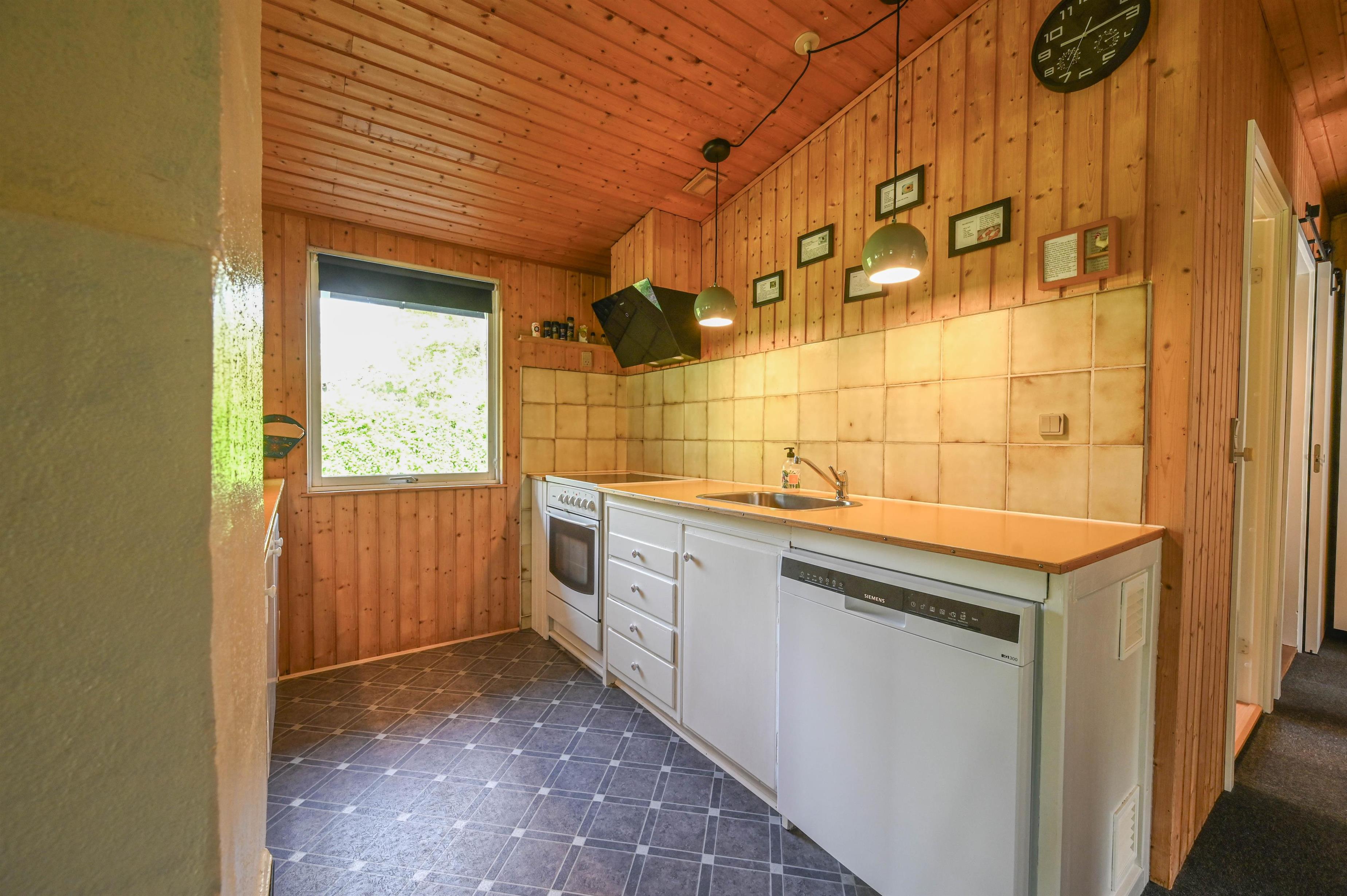 Huset er lyst og venligt indrettet med fokus på hygge og fællesskab. Det åbne køkken ligger i direkte forbindelse med stuen, hvor der både er spiseplads og sofahjørne med TV. Her kan I samles til hyggelige aftener foran brændeovnen eller nyde den behagelige varme fra varmepumpen efter en dag ved fjorden eller stranden.