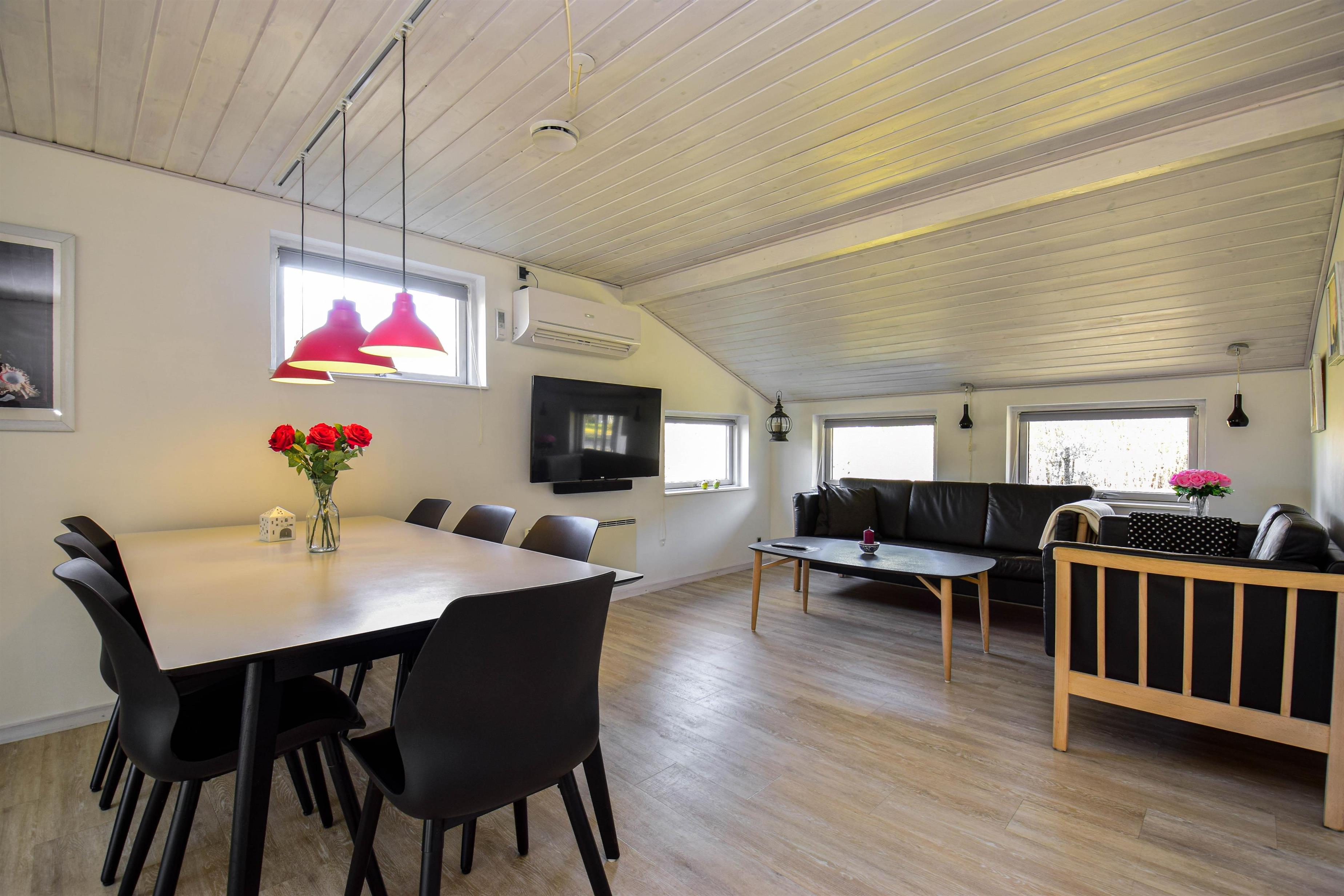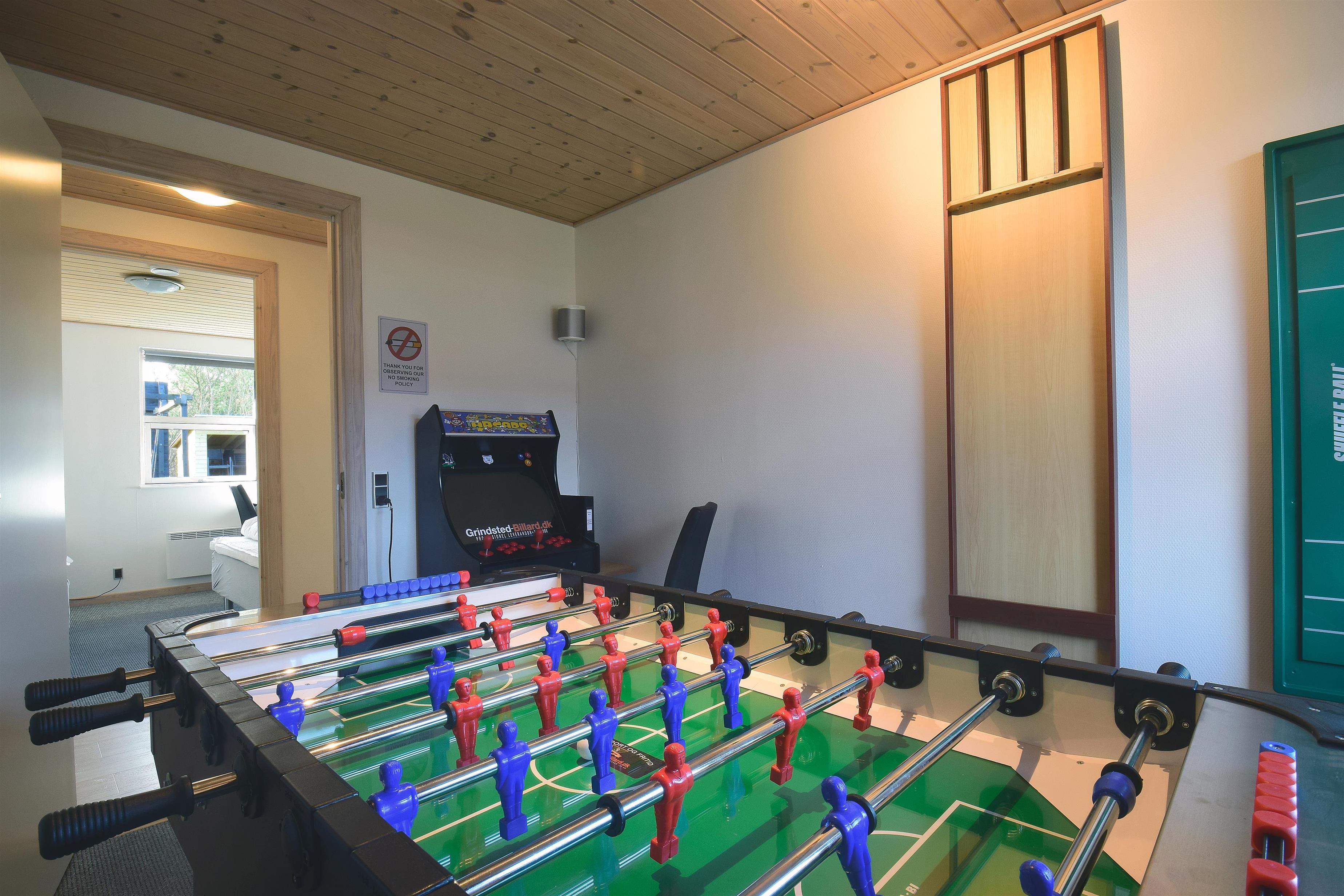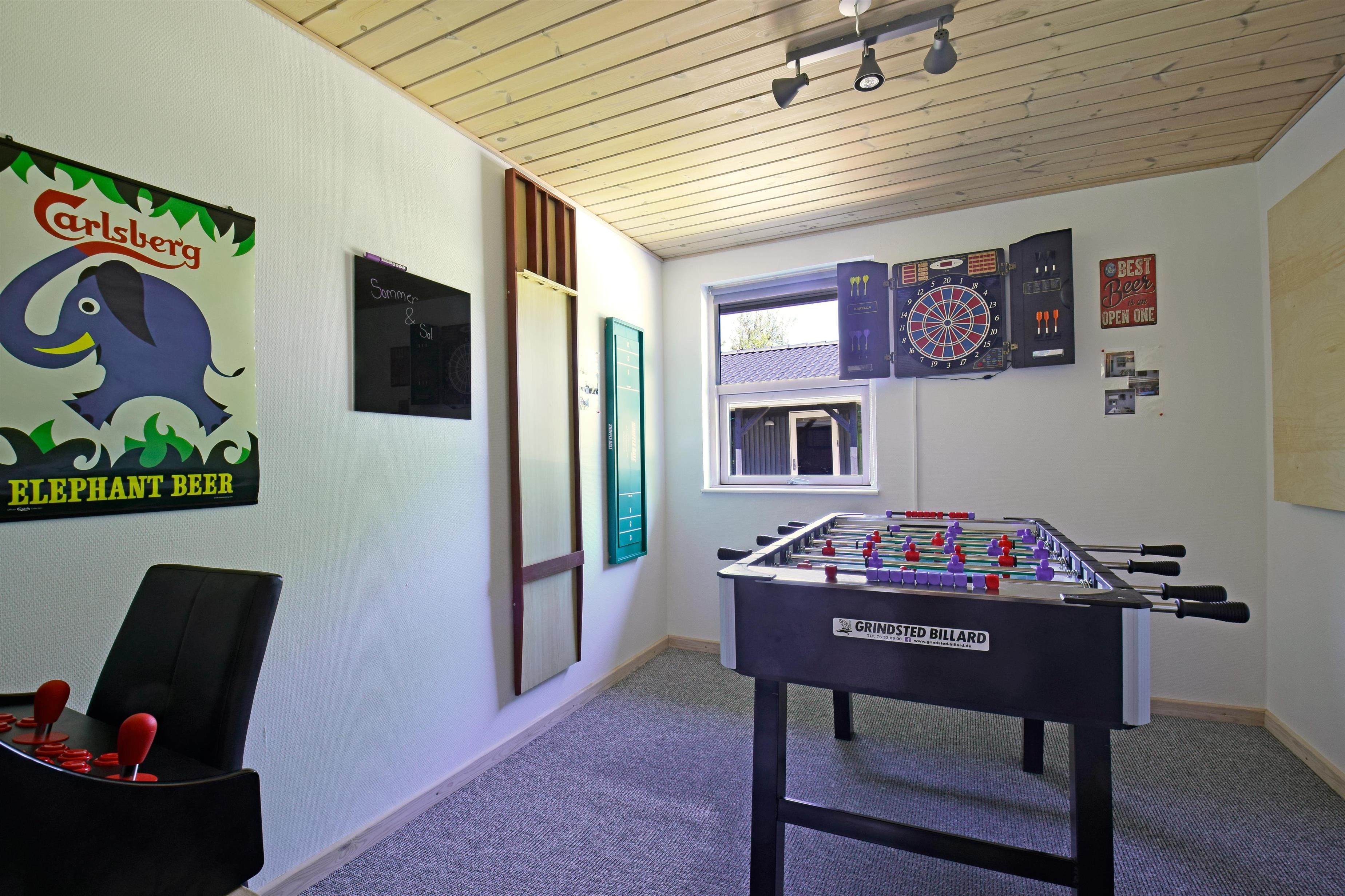 Huset er indrettet med en stor stue med to sofagrupper, spisebord samt en god brændeovn. Køkkenet er indrettet lyst og rummeligt og har alle moderne nødvendigheder. Huset har to badeværelser, det ene med både spa og sauna, samt et gæstebadeværelse med brus. I finder derudover to værelser med dobbeltsenge, elevationsenge i begge af disse værelser, samt et værelse med to enkeltsenge. Derudover er der indrettet et spilleværelse, med spillemaskine, bordfodboldbord, dart samt andre spil. Et sikkert hit for børnene.