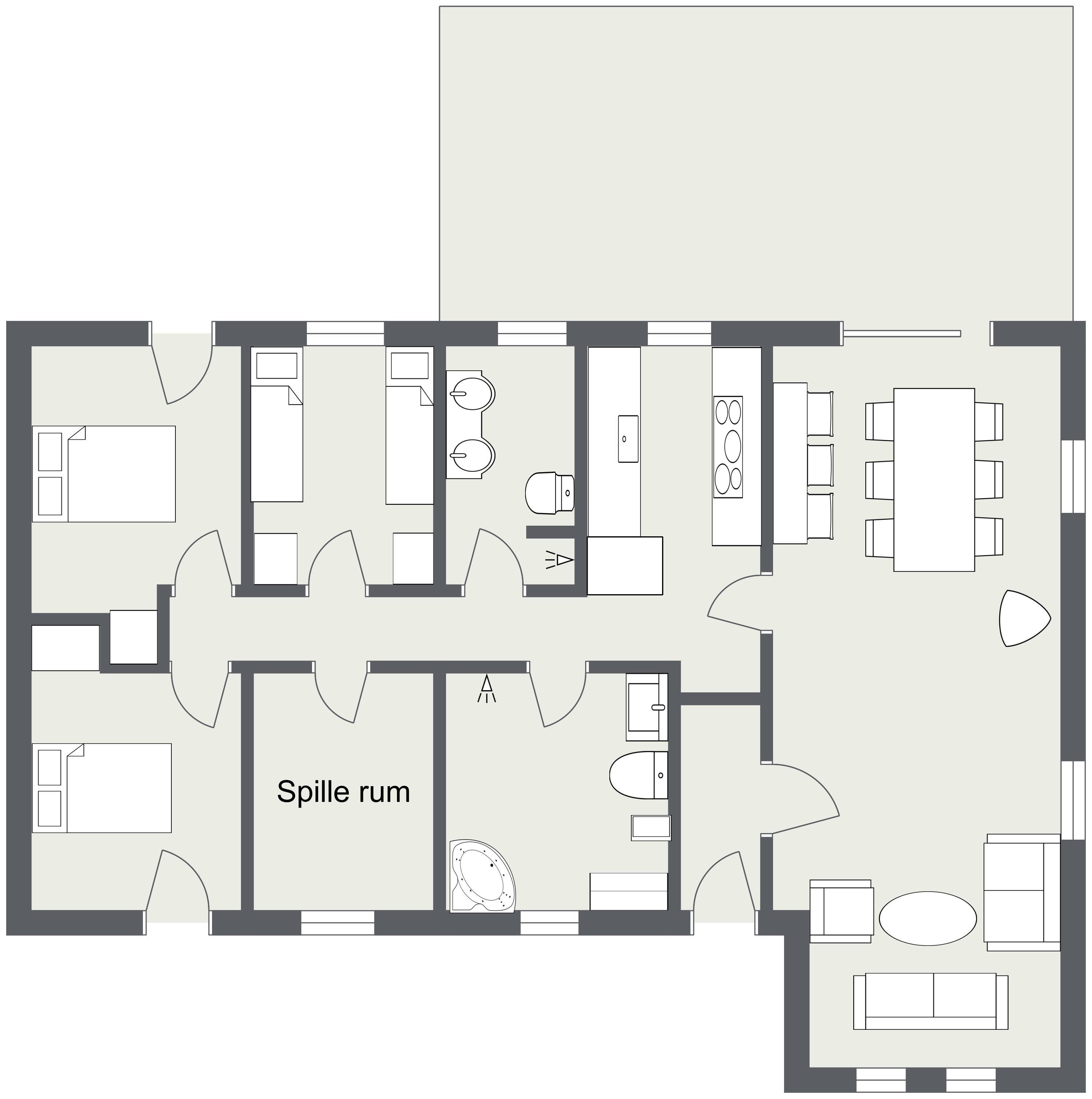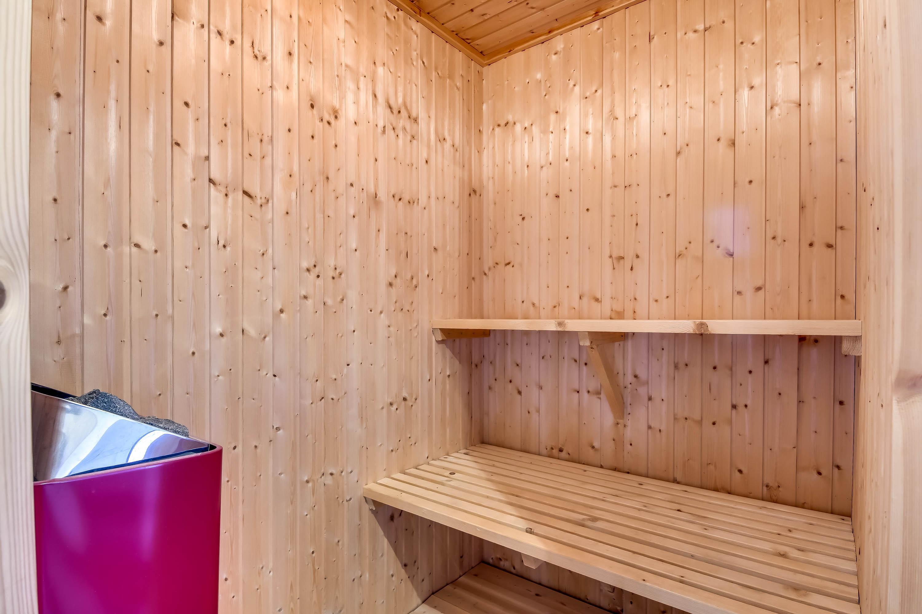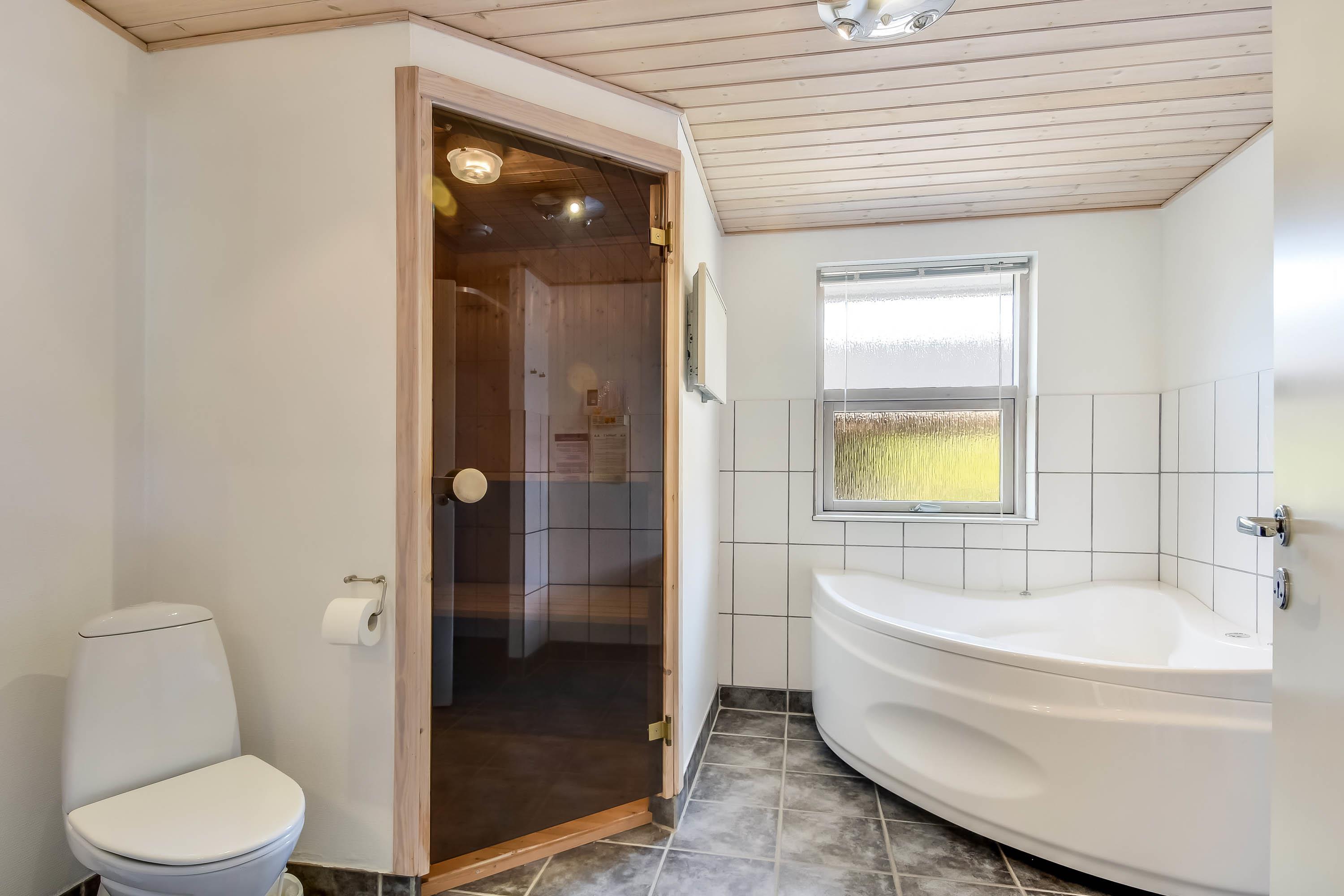 Huset er indrettet med en stor stue med to sofagrupper, spisebord samt en god brændeovn. Køkkenet er indrettet lyst og rummeligt og har alle moderne nødvendigheder. Huset har to badeværelser, det ene med både spa og sauna, samt et gæstebadeværelse med brus. I finder derudover to værelser med dobbeltsenge, elevationsenge i begge af disse værelser, samt et værelse med to enkeltsenge. Derudover er der indrettet et spilleværelse, med spillemaskine, bordfodboldbord, dart samt andre spil. Et sikkert hit for børnene.