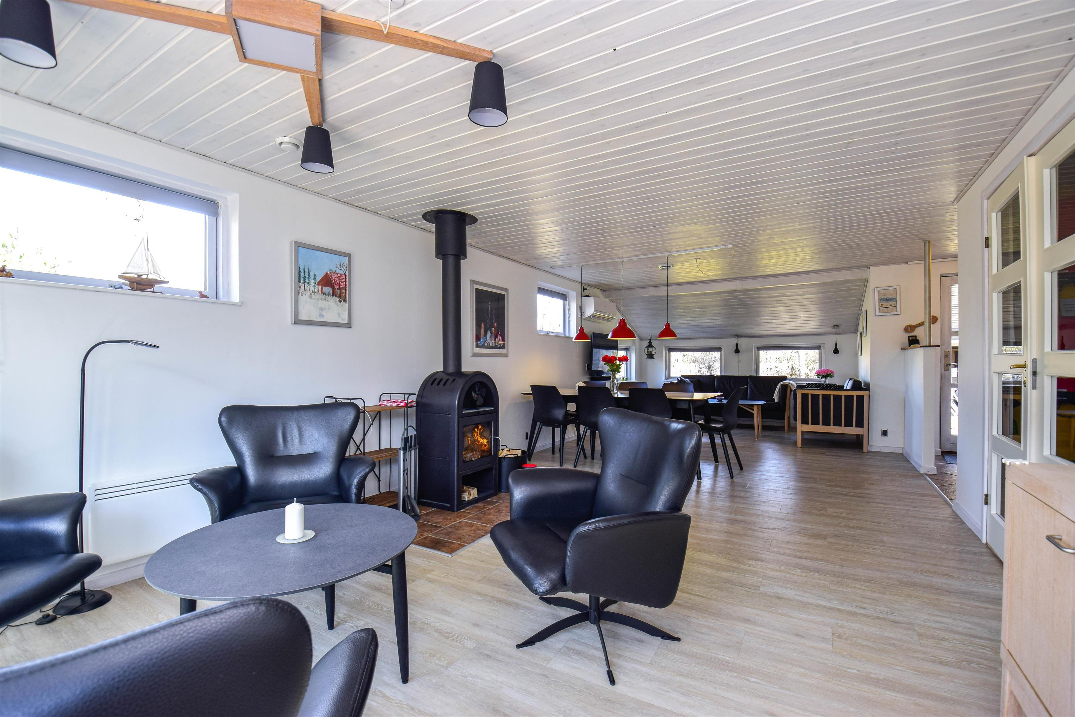 I nærheden af det børnevenlige Nissum Fjord, og det hyggelige lille fiskerleje Sandholm Havn, ligger dette dejlige feriehus på 125 m2, på en 1000 m2 delvis lukket grund. På feriehusets sydside er der en dejlig ugeneret terrasse, her findes også en udevask, hvor der er mulighed for at skylle grønsager eller gøre fisk i stand.