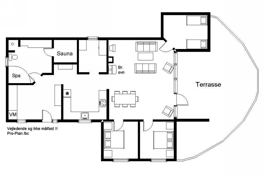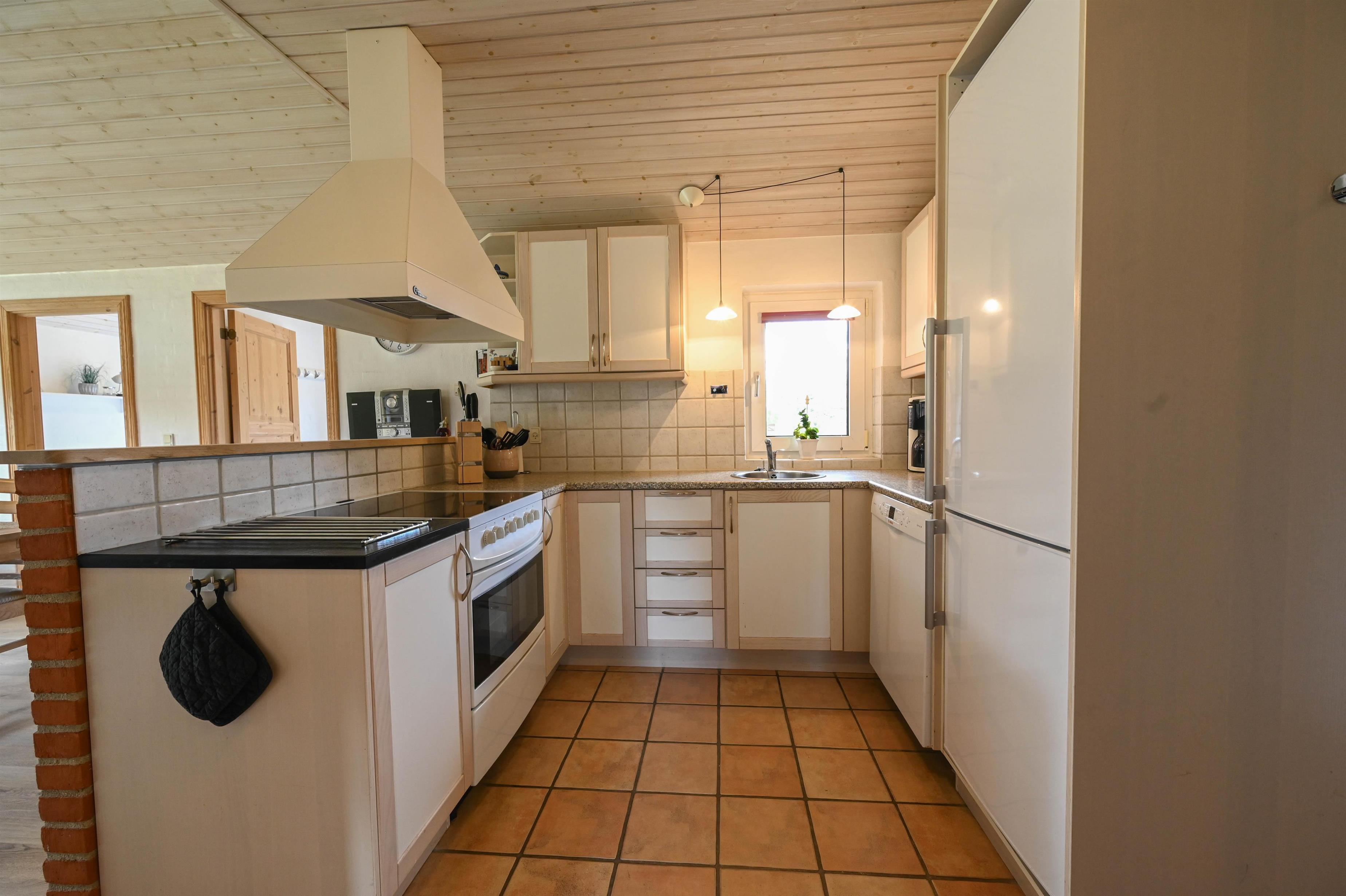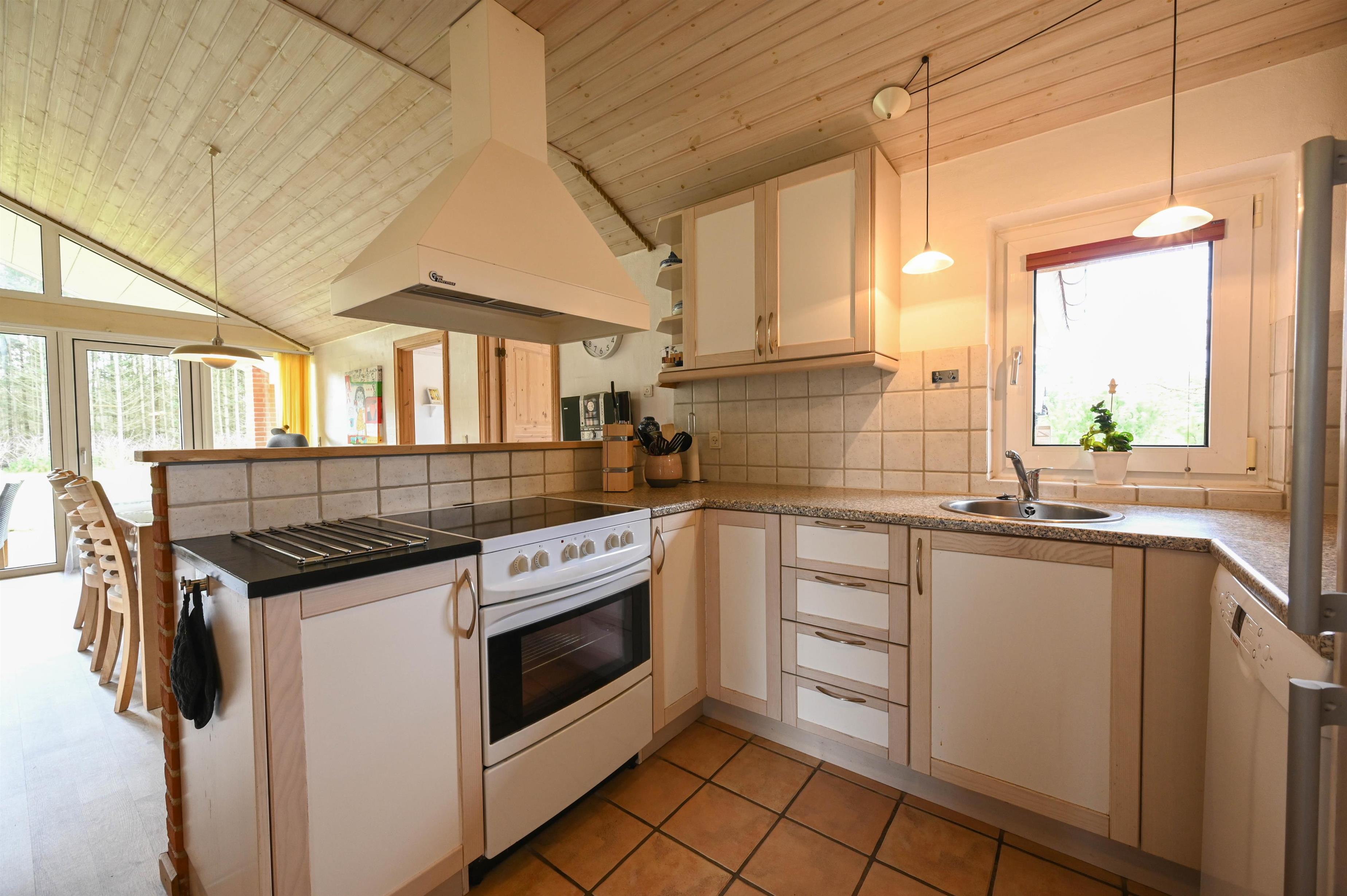 Køkkenet ligger i åben forbindelse med stuen og er godt udstyret, så der er gode rammer for fælles madlavning og hyggelige måltider. Efter en dag i naturen kan du slappe af i spaen eller saunaen og nyde roen.