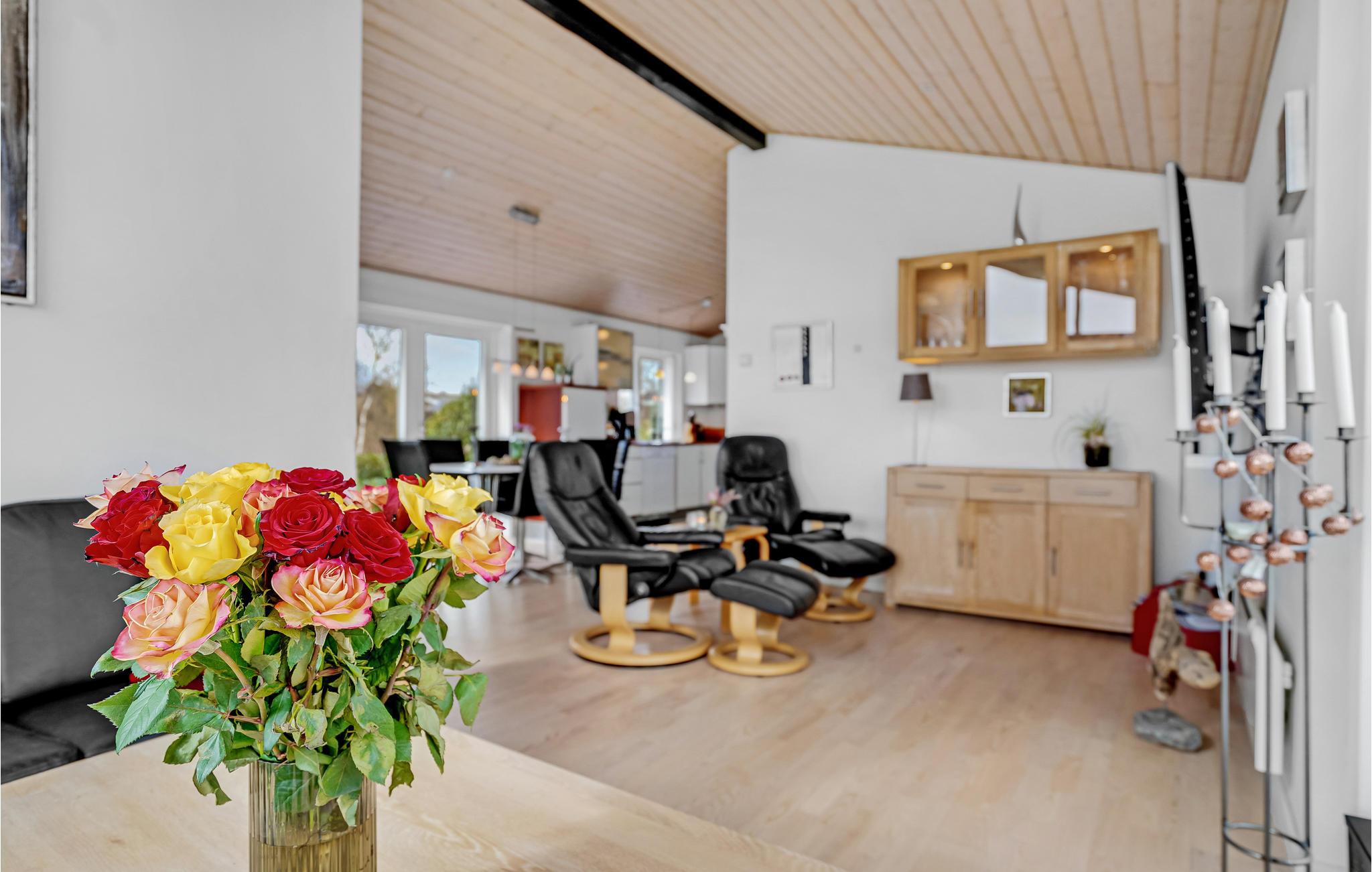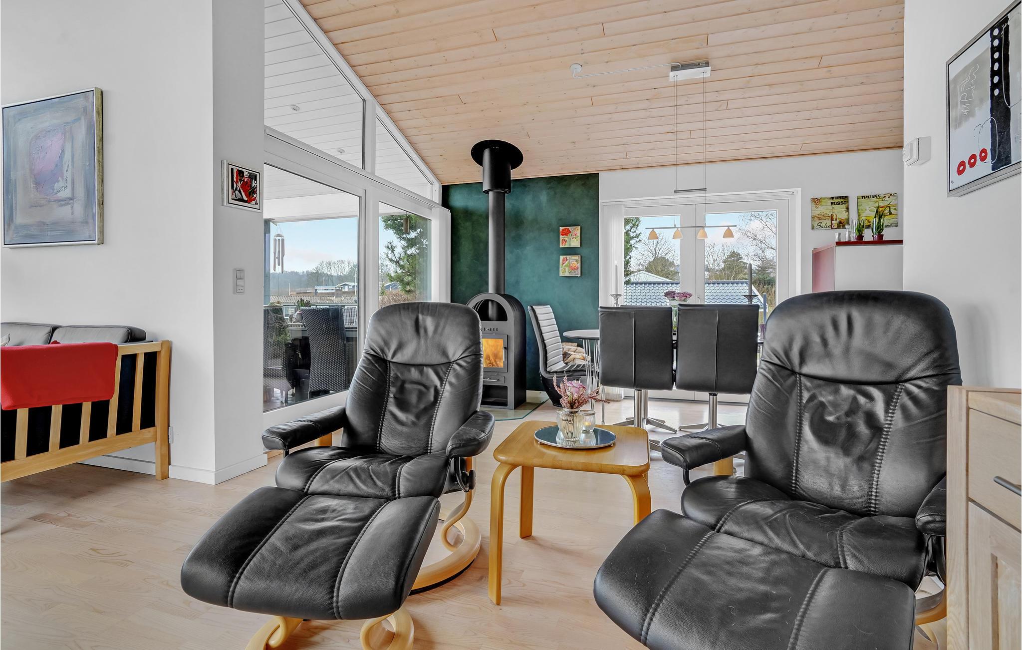 Huset er smagfuldt indrettet og tæller et hyggeligt opholdsrum, hvor I kan samles om dagens måltider, til brætspil eller for at nyde varmen fra brændeovnen. I bor ikke mere end 100 meter fra vandet, så I har rig mulighed for at bade eller fange fisk i løbet af dagen. På den åbne terrasse kan I lade de friskfangede fisk syde på grillen, mens I nyder solen og lader børnene lege på græsplænen.