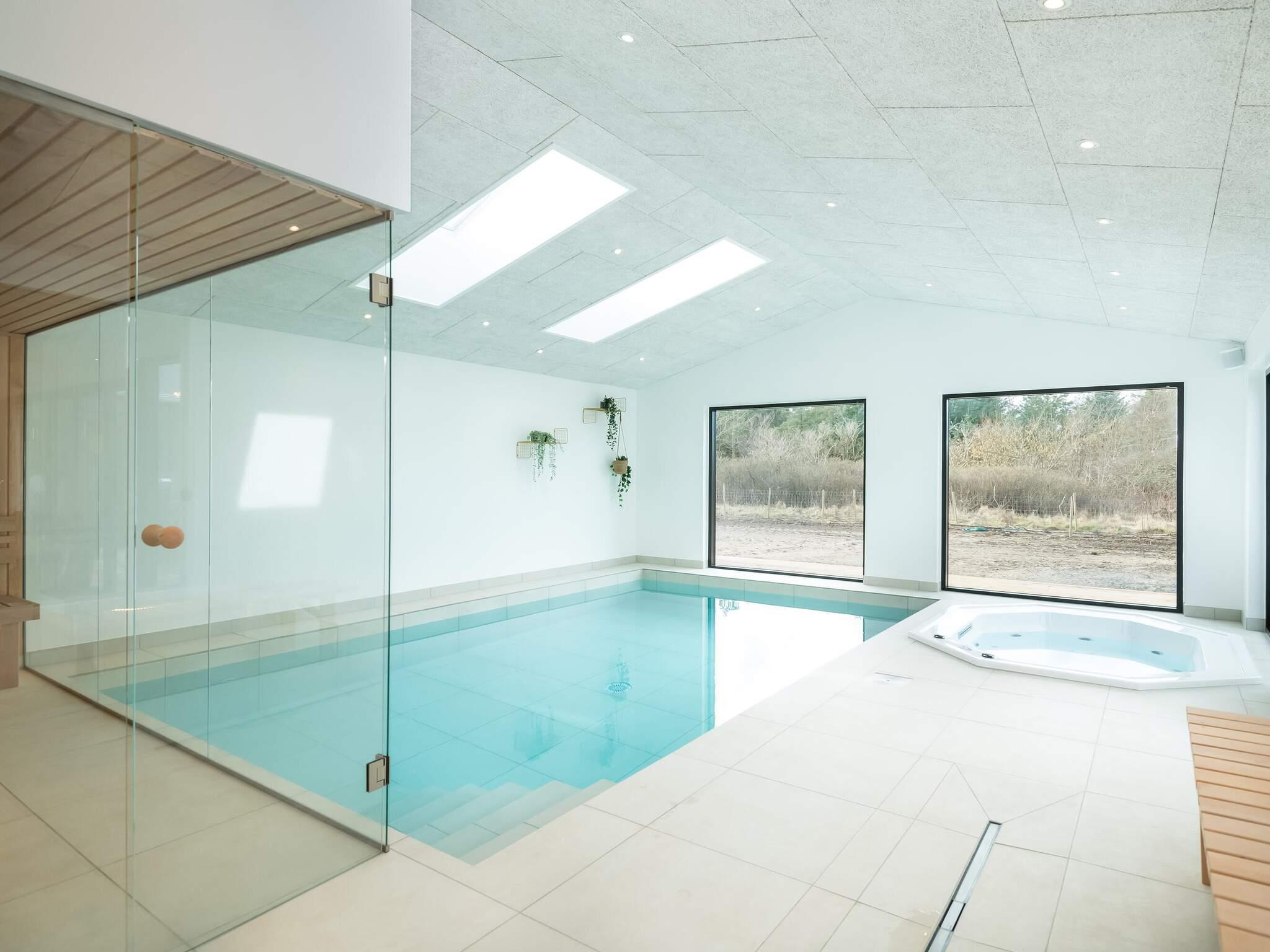 Ved Nr. Lyngby finder du dette sommerhus fra 2021, som byder på masser af luksus og komfort. Her er der lagt stor vægt på detaljen. Der er blandt andet en dejlig indendørs swimmingpool med glasdøre til spisestuen, så man kan sidde afslappet ved bordet, mens børnene plasker rundt i poolen. Wellness-rummet har også et nedsænket spabad og sauna. Udenfor er der et spabad, som kan nydes hele året rundt.