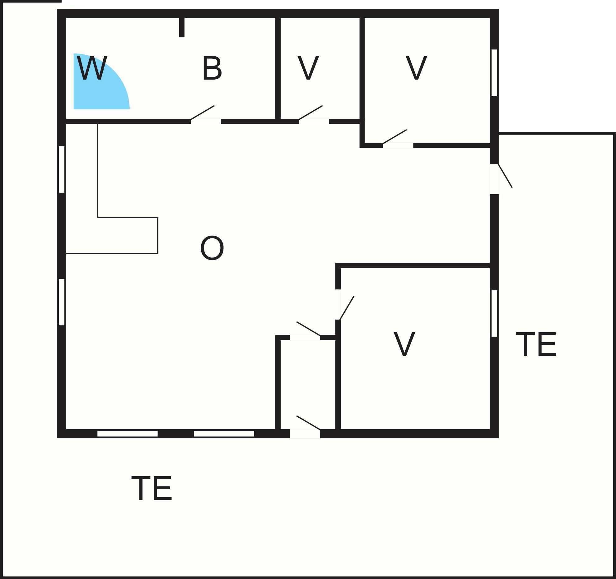 1 Opholdsstue: Brændeovn, radio, cd-afspiller, dvd-afspiller, tv, parabol, høj stol