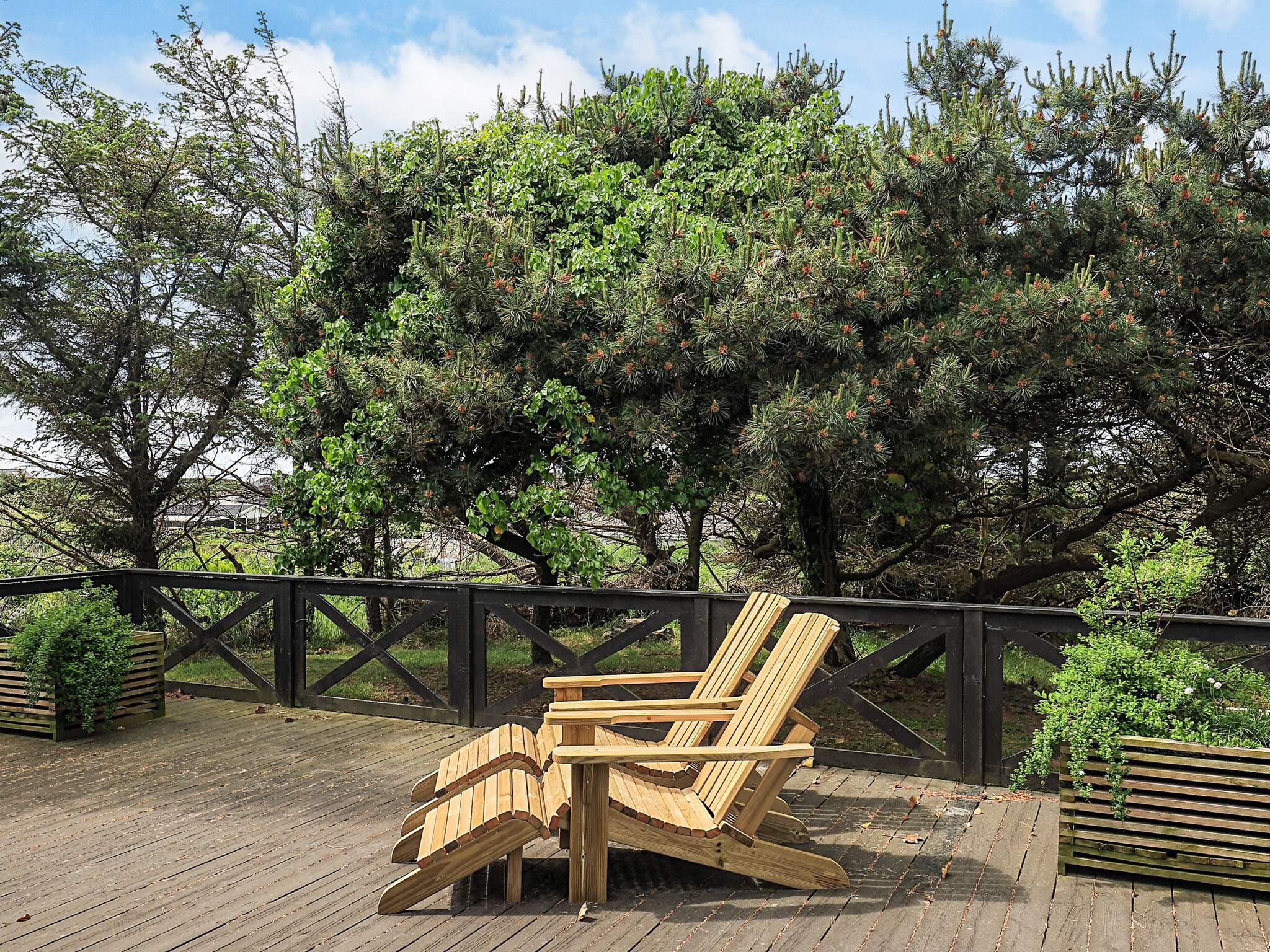 Udenfor byder huset på en overdækket terrasse, der er tilgængelig fra stuen, samt endnu et overdækket område ved indgangen. Ejendommen ligger på en 1.719 m² stor naturgrund, der giver rigelig plads til, at børn kan lege og udforske sikkert. Omgivet af frodige grønne områder byder boligen på privatliv, mens den stadig er tæt på stranden og den lokale natur. Dens kombination af indendørs faciliteter, udendørs rum og nærhed til en rolig kystlinje gør det til et ideelt valg for familier eller grupper, der søger en afslappende ferie i Danmark.