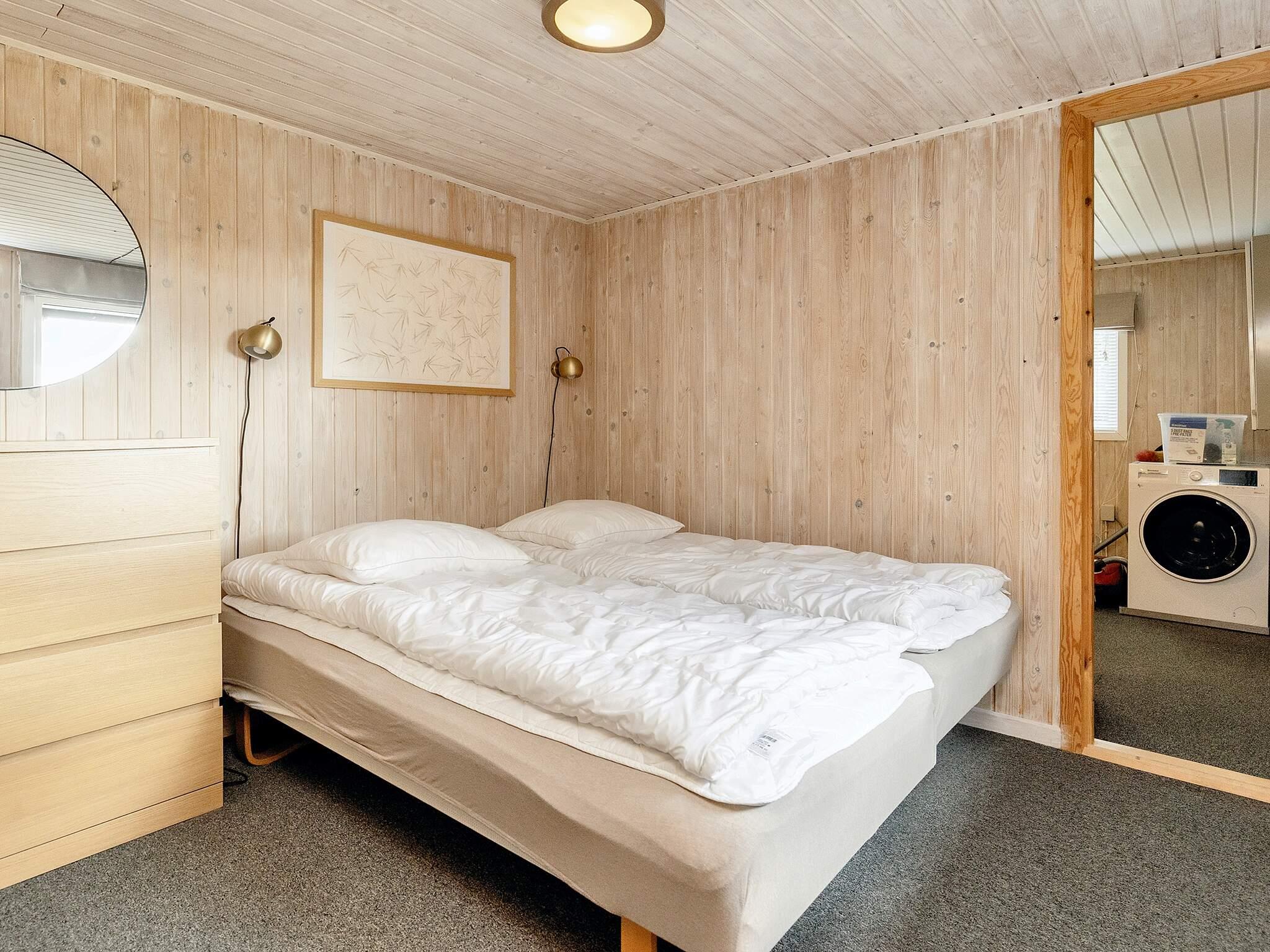 Den åbne planløsning kombinerer et fuldt udstyret køkken og en hyggelig stue med brændeovn, hvilket skaber et indbydende rum til familiemåltider og aftenafslapning. Huset har fire soveværelser: tre med dobbeltsenge og et med køjeseng til to, komfortabelt imødekommende familier. Badeværelset har også en bruseniche i glas og opbevaringsplads.