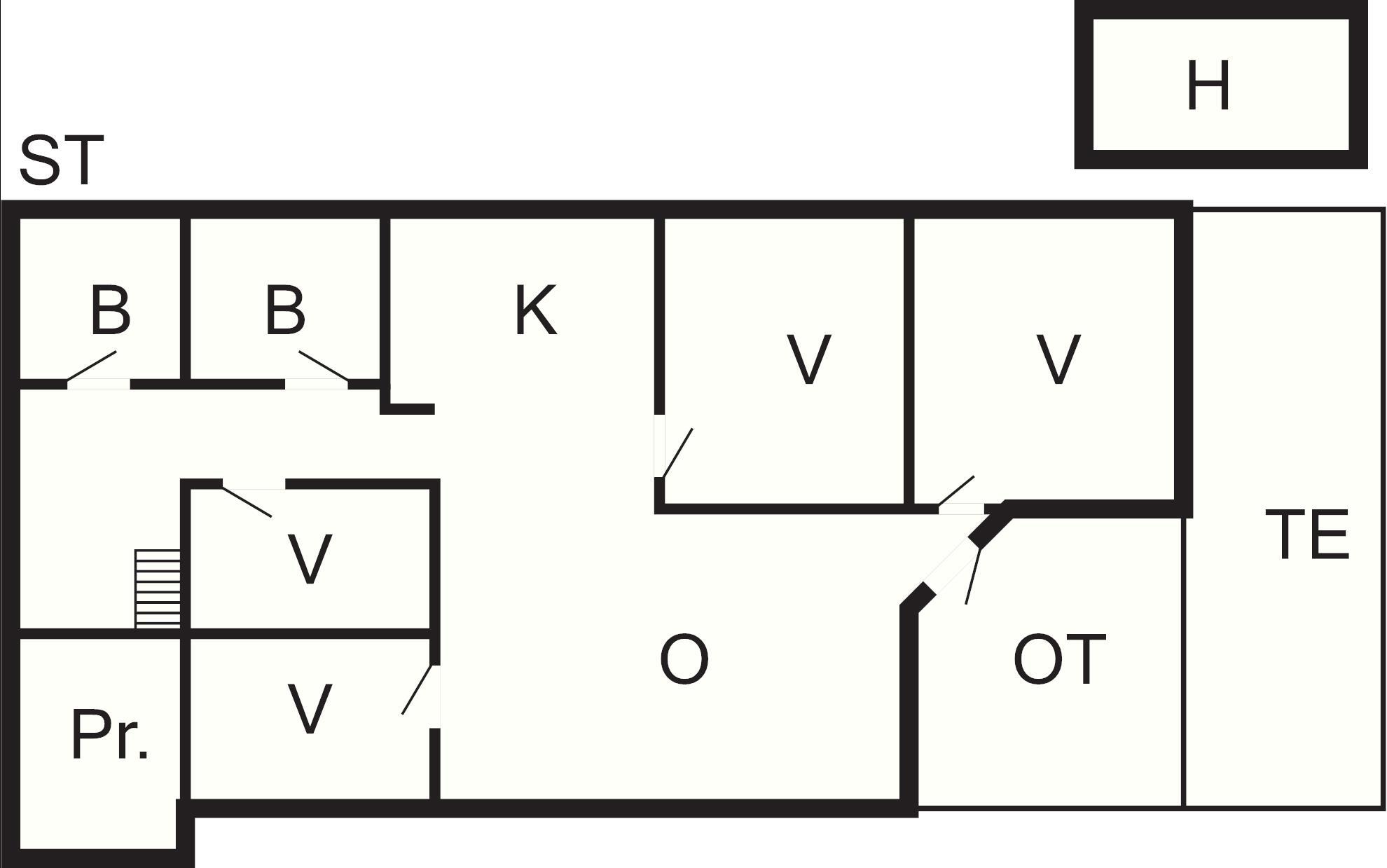 4 Soveværelser: (1DS)+(1DS)+(1DS)+(2K)