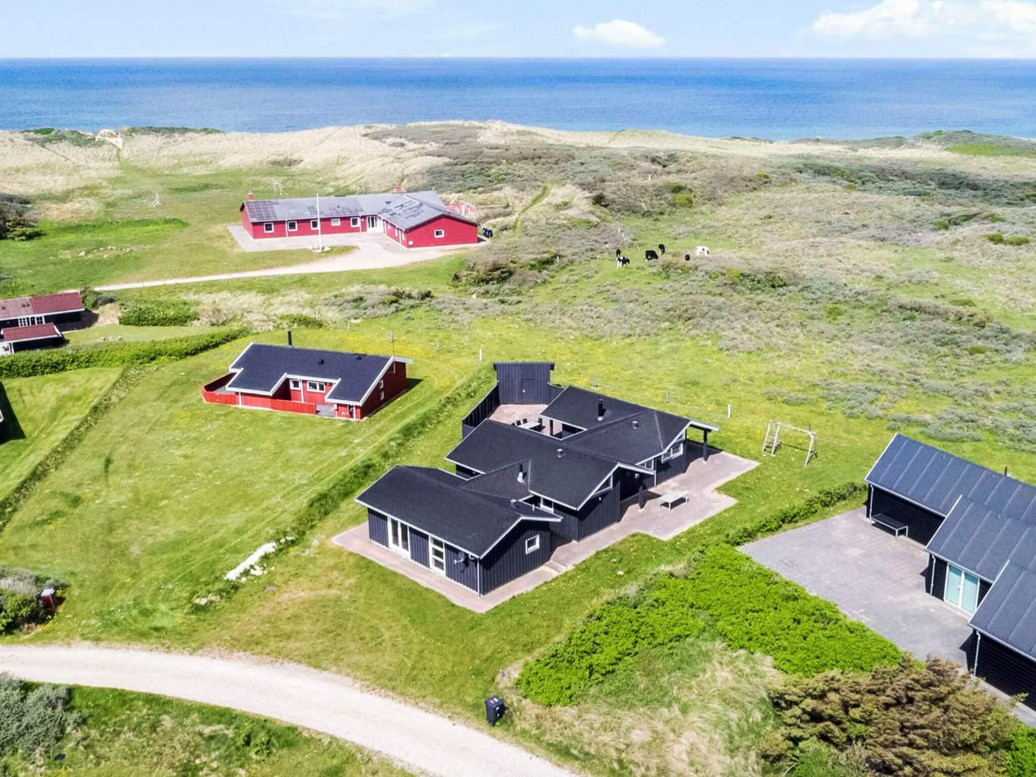Husets ydre byder på fantastisk natur og mulighed for at sidde i fred væk fra naboer på den lukkede terrasse med hegn, som giver masser af privatliv. Der er også en udendørs spa med plads til 8 personer, hvor man kan sidde i læ og nyde et koldt glas boble med en enestående udsigt over de fredede marker med fritgående kvæg og Rubjerg Knude Fyr. Som en ekstra bonus er der en udendørs bruser med både koldt og varmt vand, som kan tilgås fra saunaen, ligesom der er en ladestation til elbiler.