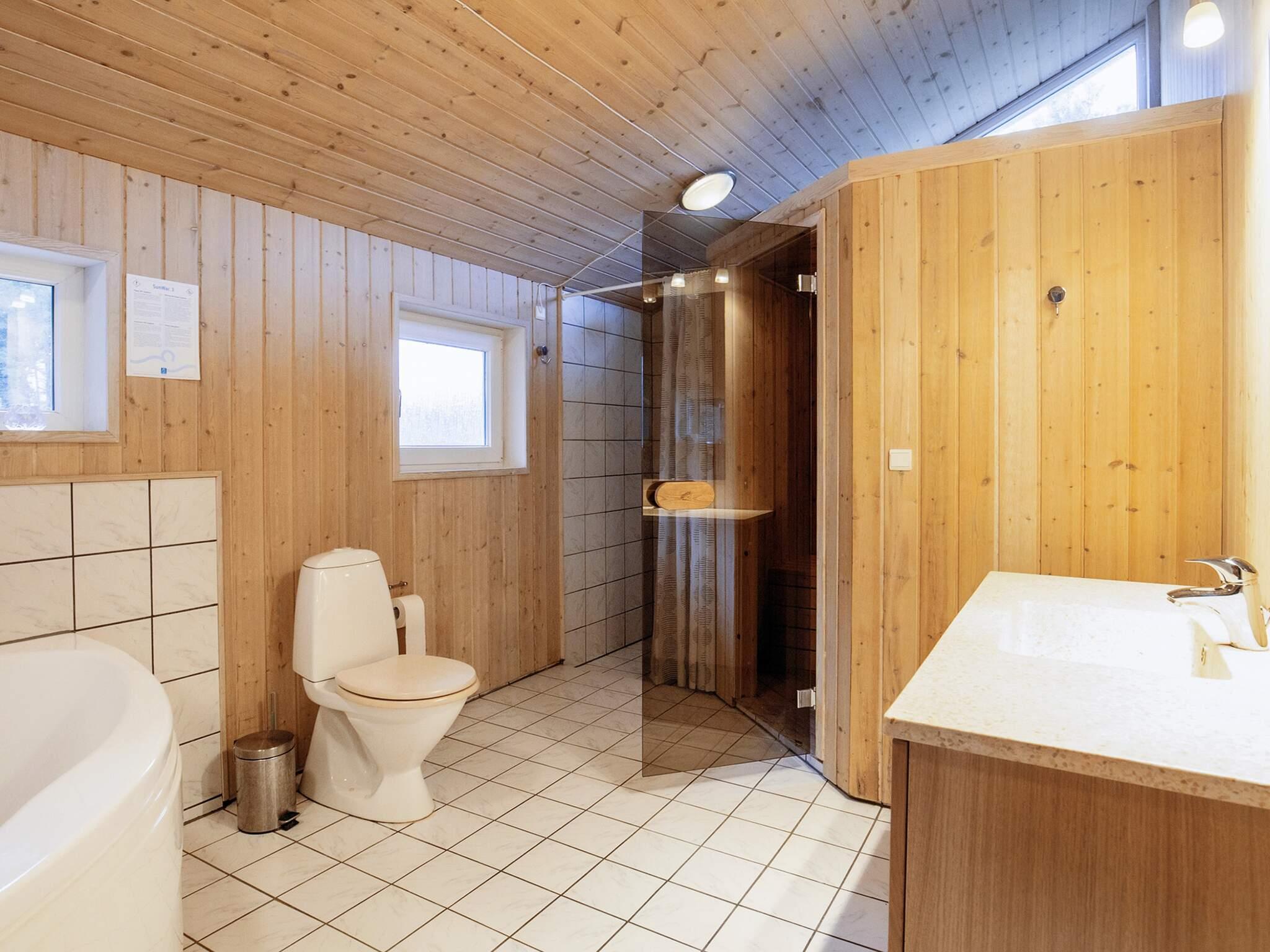 Rummeligt, lyst og moderne sommerhus med spabad beliggende på en stor naturgrund i udkanten af det charmerende lille fiskerleje Nr. Lyngby ca. 5 km nord for Løkken. Huset indeholder badeværelse med bruseniche, spabad og gulvvarme, gæstetoilet med brus og sauna, opholdsstue i åben forbindelse med køkkenet, tre soverum og alkove. Indretningen er lys og moderne i den kendte danske sommerhusstil. Opholdsstuen rummelig og med hyggelig alkove til enten ekstra sovepladser eller voksenfrit område for børnene. Til hygge og billig ekstra opvarmning er der brændeovn. Fra stuen er der direkte adgang til den store terrasse, der visse steder nærmest har karakter af en svalegang. Herfra er der en flot udsigt over naturområdet. Grunden er på godt 3000 m² og velegnet til udendørs aktiviteter som f.eks. solbadning, grillaftener eller boldspil og leg med børnene. Der er etableret bålplads. Til børnene er der gynger, sandkasse, rutsjebane og legetårn. Udlejes ikke til ungdomsgrupper.