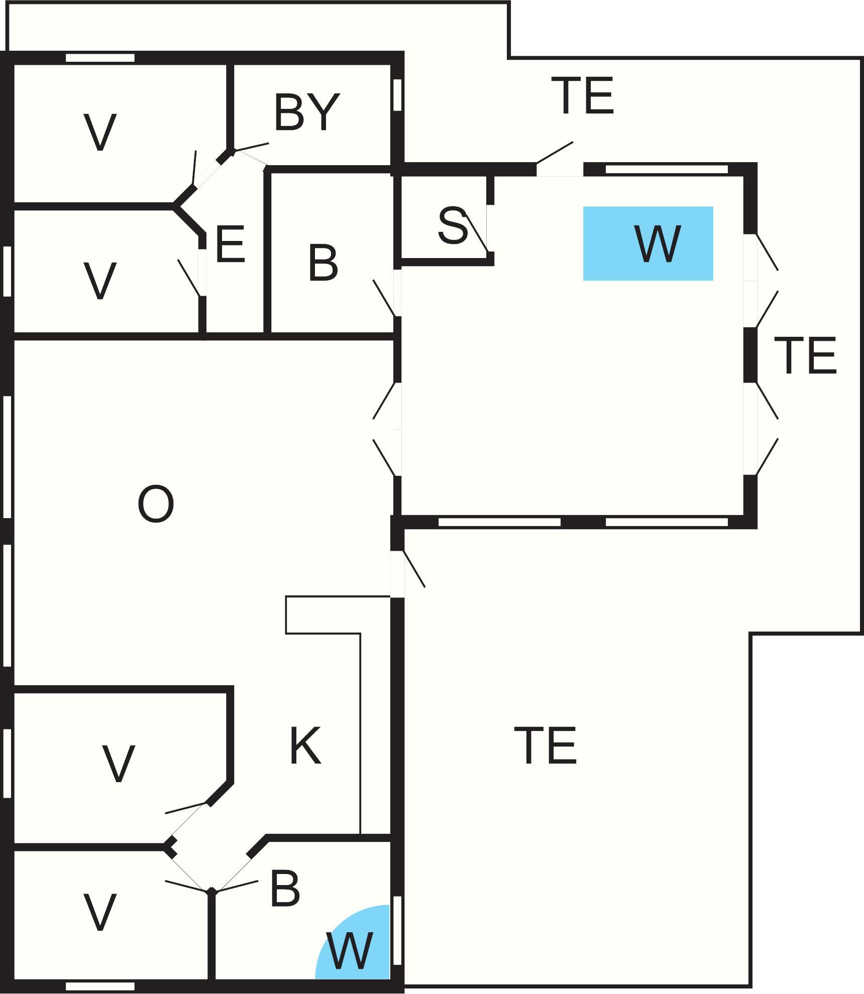 4 Soveværelser: (1DS)+(1DS)+(1DS)+(1S), barneseng