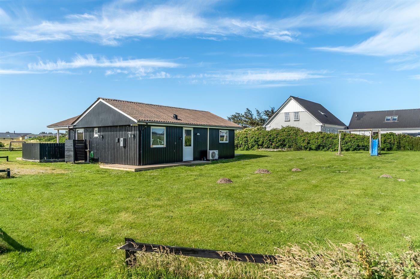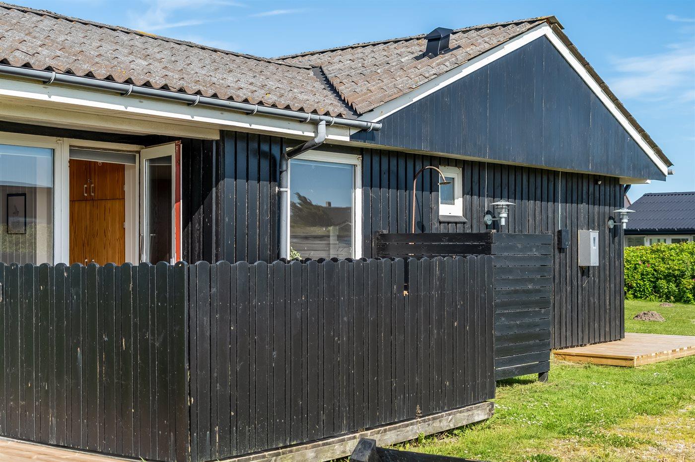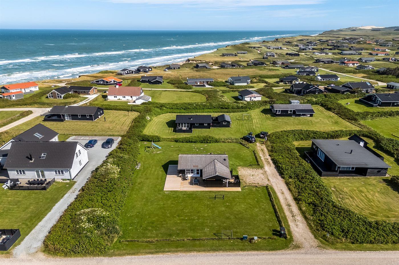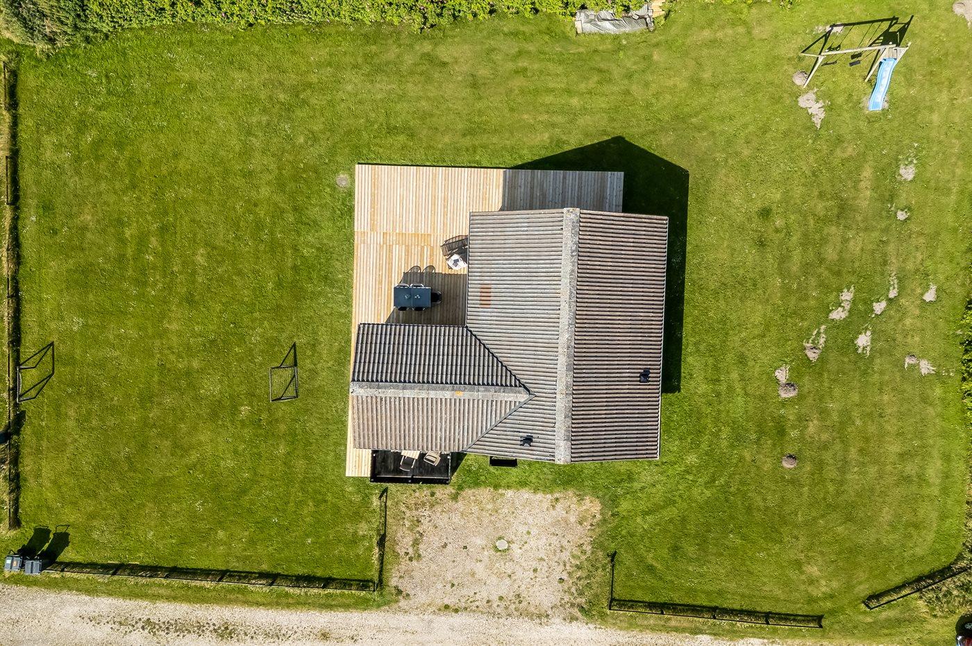 Ferieboligen er beliggende på en 1266 m² stor havegrund. Der er 130 m til havet. Nærmeste forretning er beliggende i en afstand af 4000 m. Til ferieboligen hører åbent terrasseareal. Desuden er der overdækket terrasse. Gynge. Rutchebane. Udendørs bruser. Grill til rådighed. Der er installeret stik til opladning af elbil. Type 2 stik. Med 6 kW ladeeffekt. Parkering ved ferieboligen.