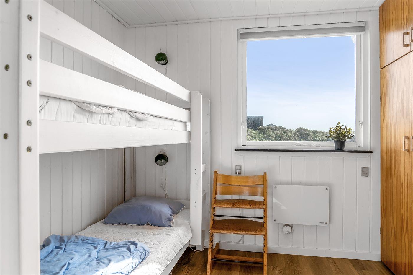 Der er i alt 3 soveværelser. Sovepladserne fordeler sig på: 2 sovepladser i dobbeltseng. 2 sovepladser i enkeltsenge. 2 sovepladser i køjeseng.