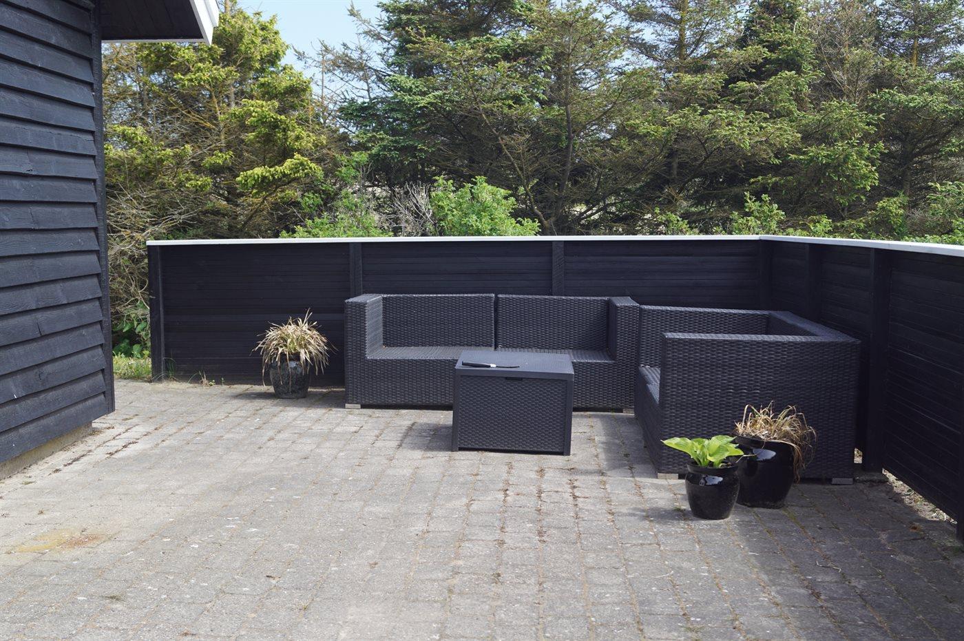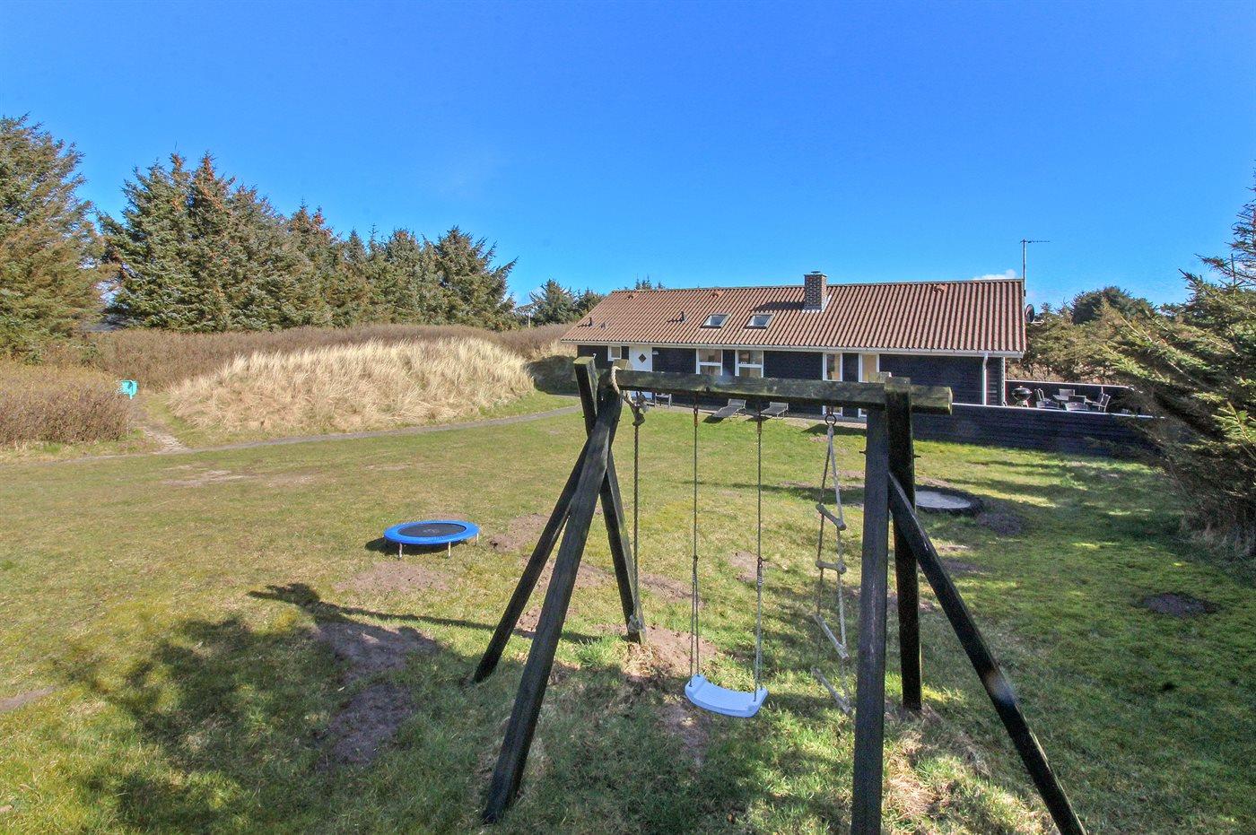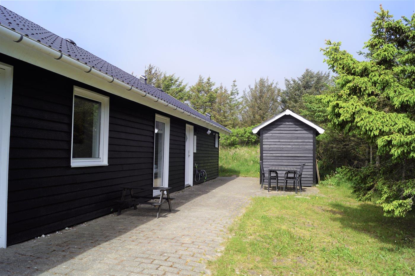 Ferieboligen er beliggende på en 1600 m² stor naturgrund. Der er 350 m til havet. Nærmeste forretning er beliggende i en afstand af 6000 m. Til ferieboligen hører 75 m² terrasseareal. Der er redskabsrum. Gynge. Sandkasse. Der er installeret stik til opladning af elbil. CEE stik. Parkering ved ferieboligen.