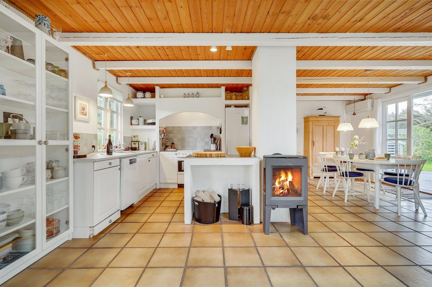 Køkkenet er udstyret med 1 køleskab. Der er 4 keramiske kogeplader, varmluftovn, mikrobølgeovn samt opvaskemaskine.