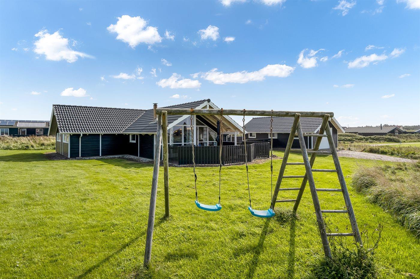 Ferieboligen er beliggende på en 1250 m² stor naturgrund. Der er 200 m til havet. Nærmeste forretning er beliggende i en afstand af 6000 m. Til ferieboligen hører 30 m² terrasseareal. Desuden er der 14 m² overdækket terrasse. Gynge. Der er garage til rådighed. Parkering ved ferieboligen.