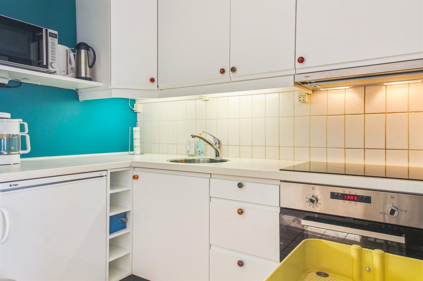 Køkkenet er udstyret med 1 køleskab. Der er 4 keramiske kogeplader, bageovn, mikrobølgeovn.