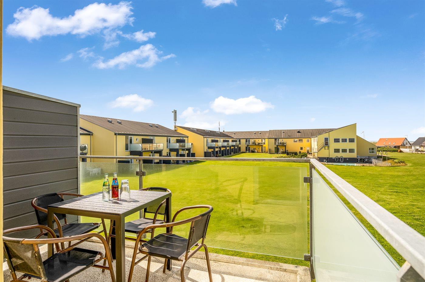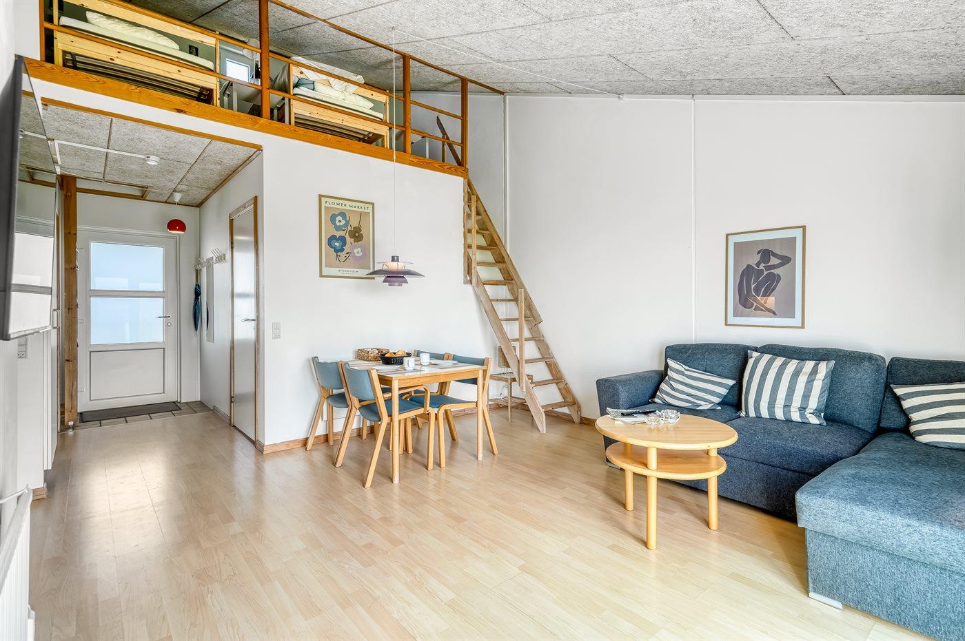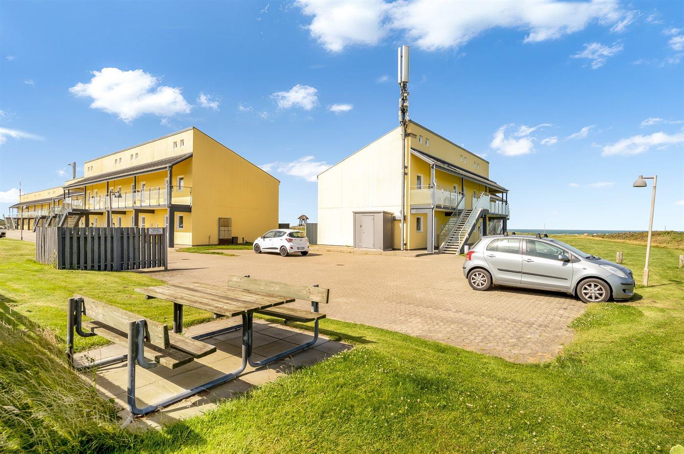 Ferielejlighed i Nr. Lyngby, et dejligt sommerhusområde ved vestkysten mellem Løkken og Lønstrup, som er kendt for sin stejle kyst og en dejlig sandstrand. Til Nr. Lyngby Feriecenter hører en fælles udendørs swimmingpool samt en børnepool. Poolen ligger på den store fælles græsplæne, og er tilgængelig fra uge 26-34. På de omkringliggende fællesarealer er der en god legeplads med gynge og sandkasse til børnene. I fælleshuset er der gratis adgang til vaskemaskiner og tørretumbler. Denne lejlighed ligger på 1. sal med udsigt ud over vandet og kysten fra såvel lejligheden som grunden. Lejligheden er indrettet med hems hvor 2 af sovepladserne befinder sig.