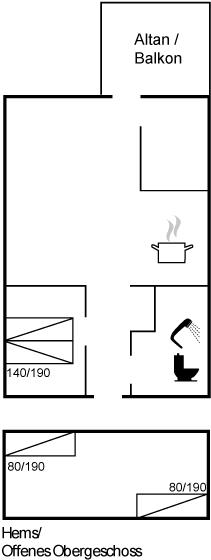 Der er i alt 1 soveværelse. Sovepladserne fordeler sig på: 2 sovepladser i dobbeltseng. 2 sovepladser i enkeltsenge. 2 af disse sovepladser befinder sig på husets hems.