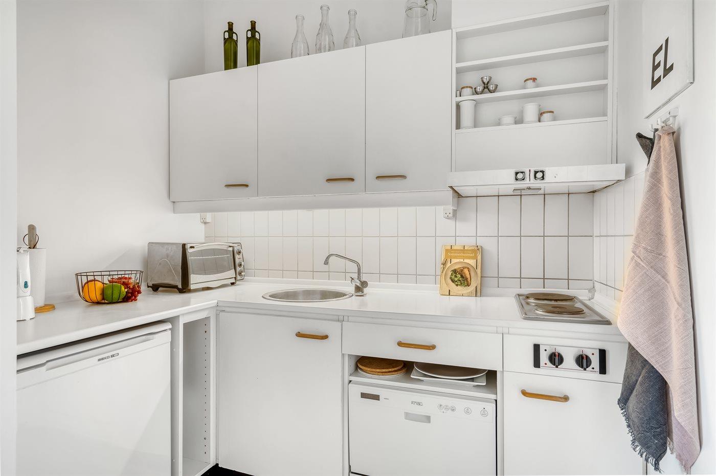 Køkkenet er udstyret med 1 køleskab. Der er 2 elkogeplader, miniovn samt opvaskemaskine (bordmodel).