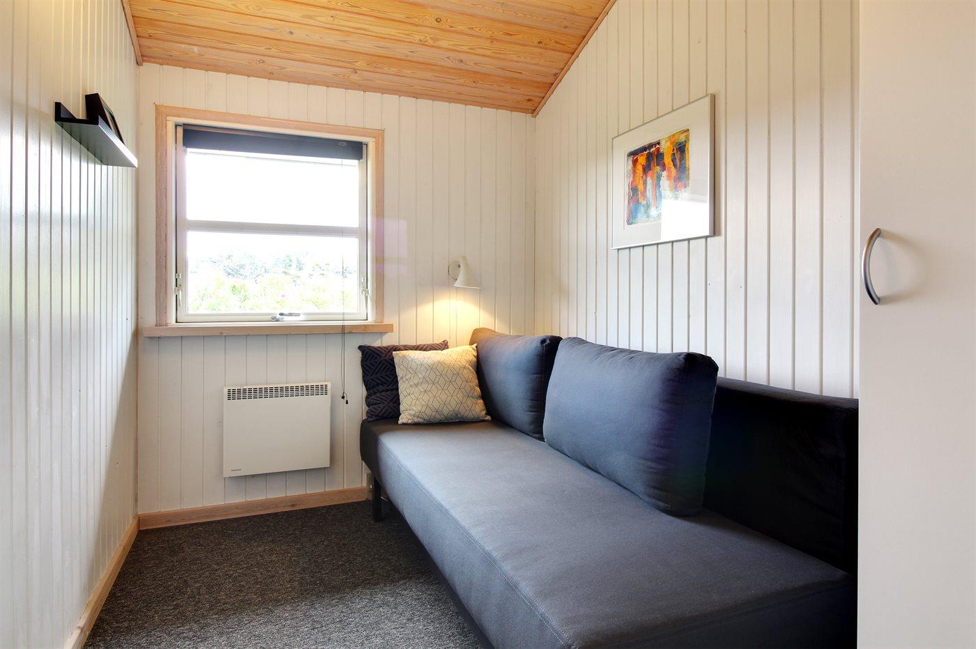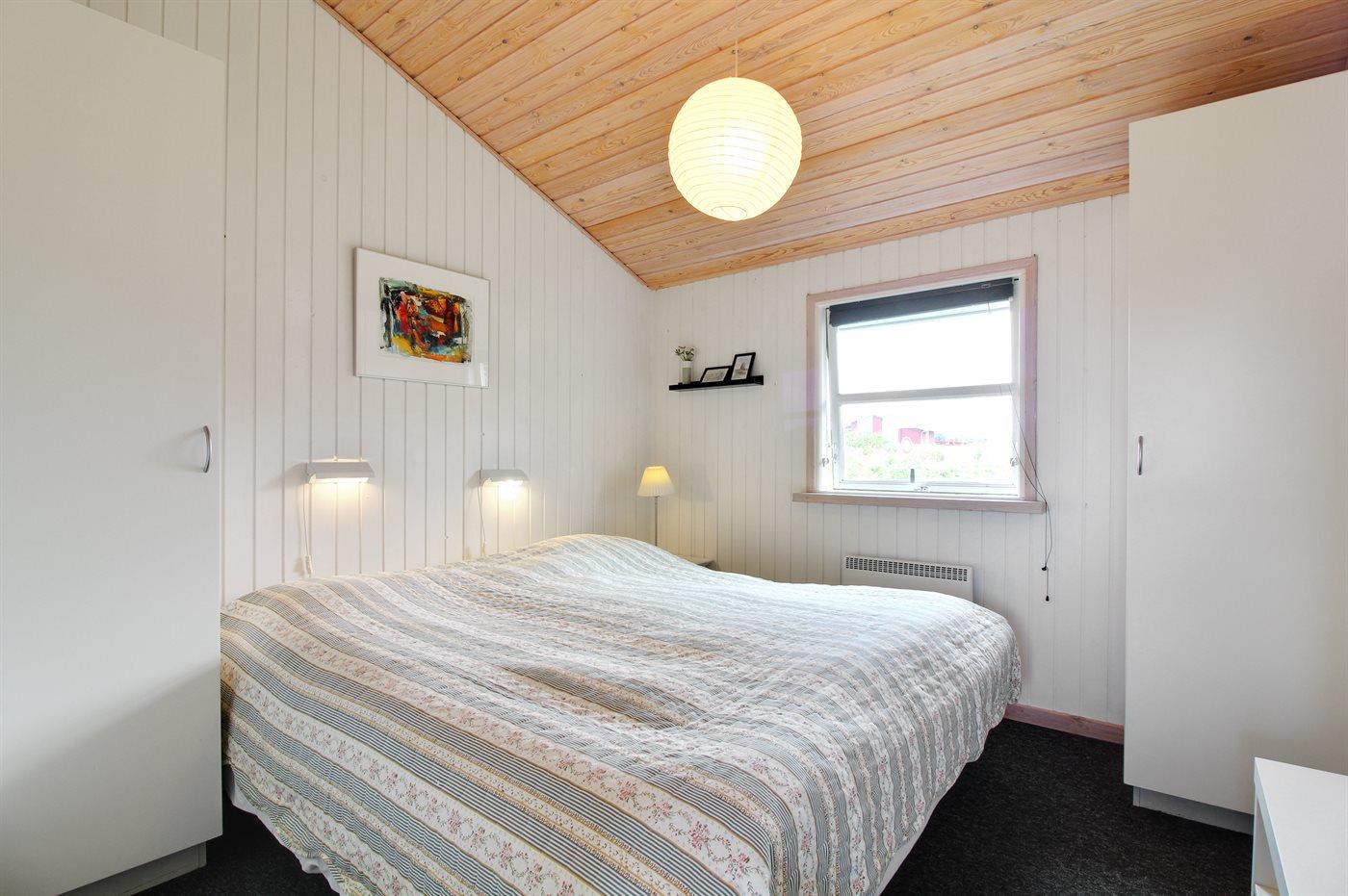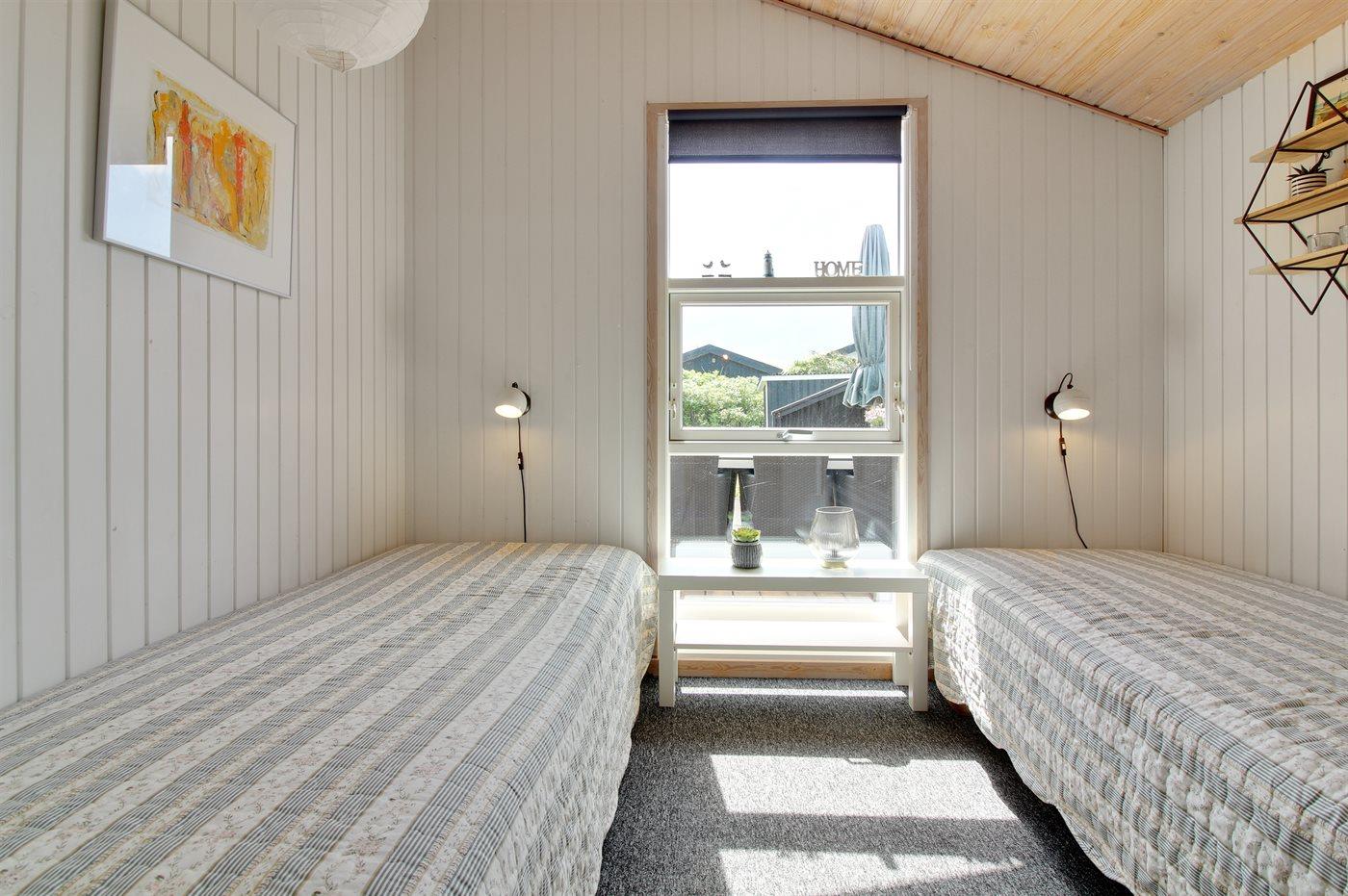 Der er i alt 3 soveværelser. Sovepladserne fordeler sig på: 2 sovepladser i dobbeltseng. 2 sovepladser i enkeltsenge. 2 sovepladser i sovesofa (dobbelt). Derudover er der 1 stk. barneseng.