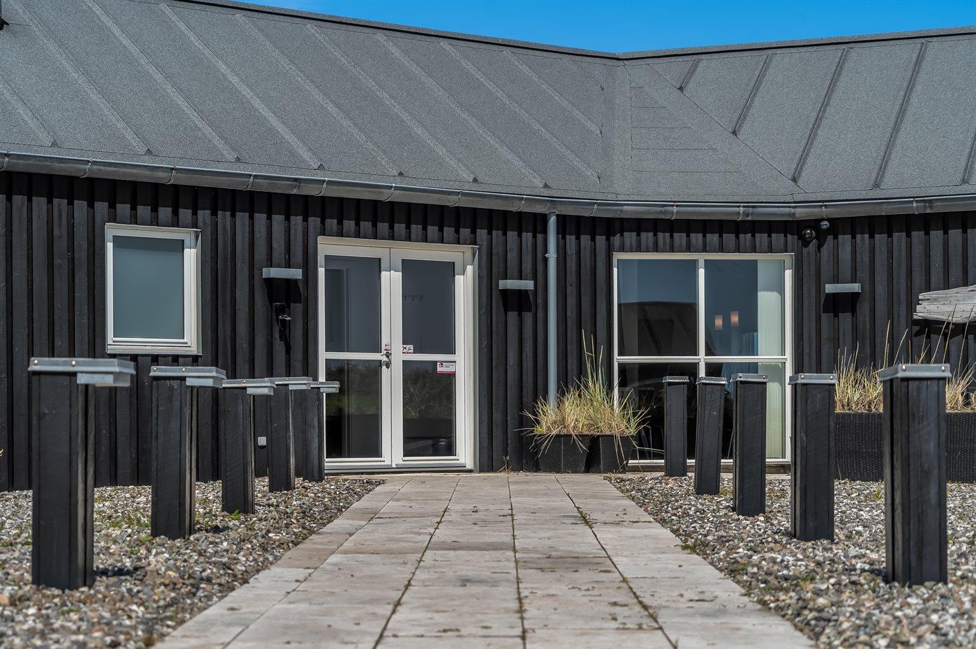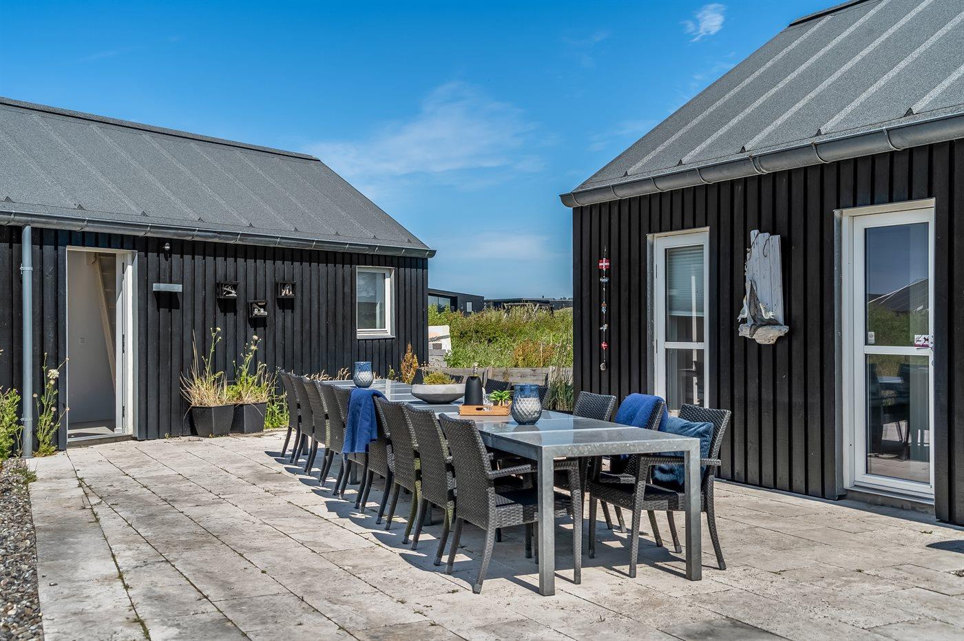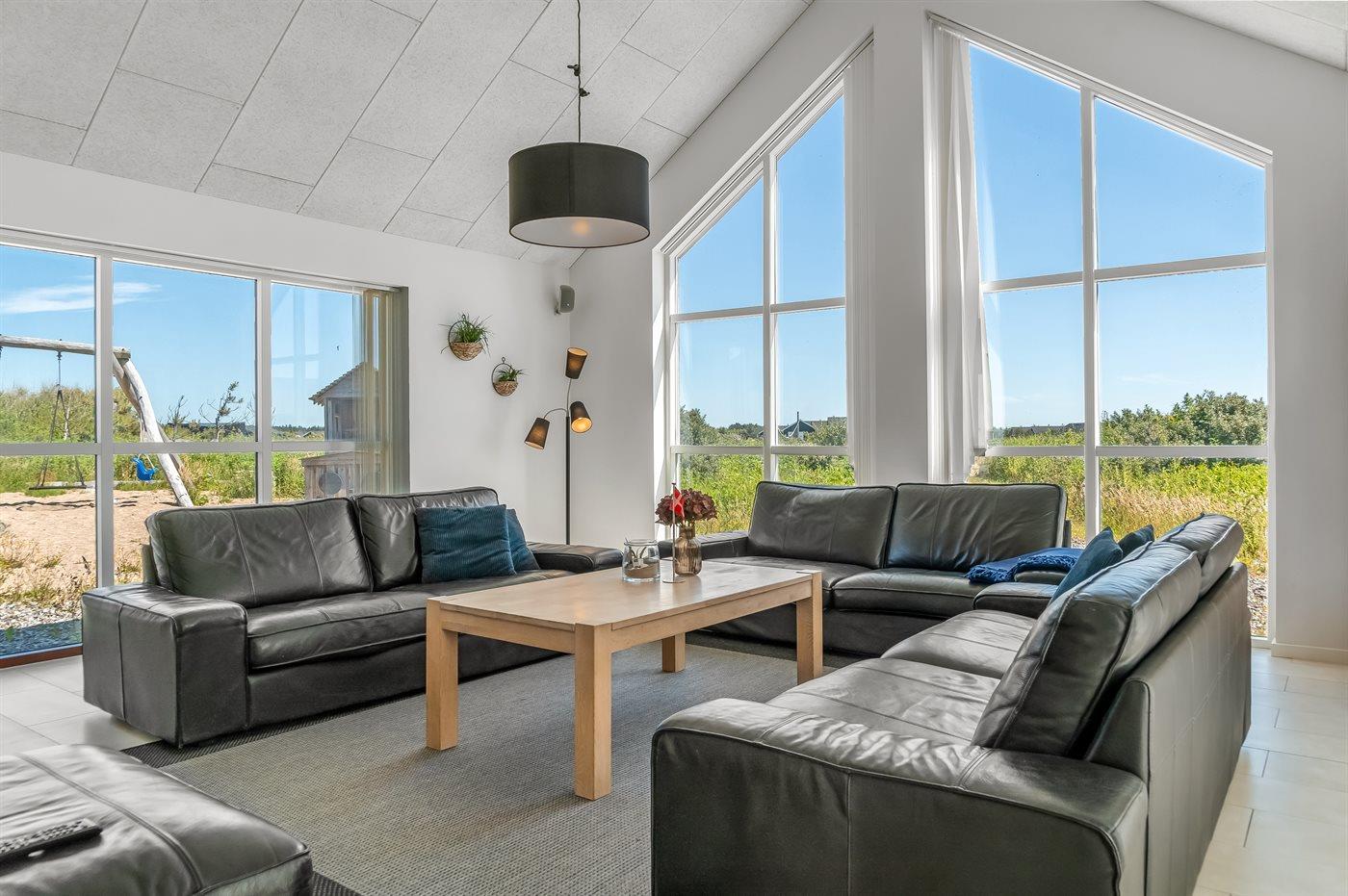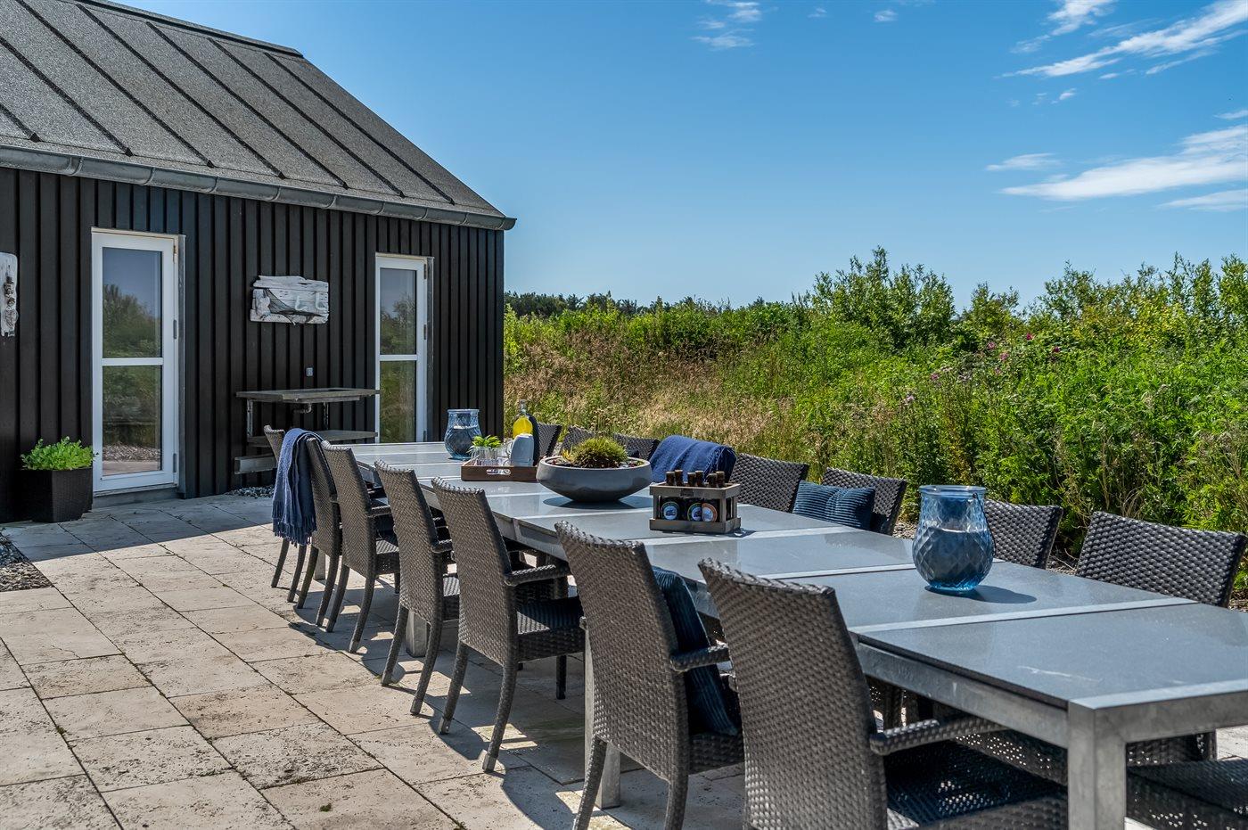Stort arkitekttegnet sommerhus nær Løkken med spa, sauna, beachvolley og aktivitetsrum på stor naturgrund.