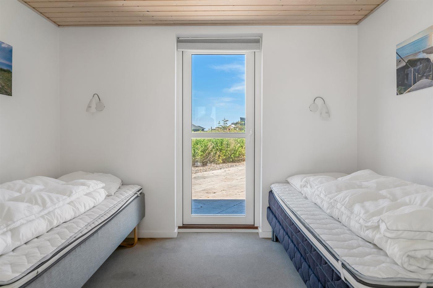 Der er i alt 5 soveværelser. Sovepladserne fordeler sig på: 6 sovepladser i dobbeltsenge. 6 sovepladser i enkeltsenge. 2 sovepladser i sovesofa (dobbelt). 4 sovepladser på madrasser. 2 af disse sovepladser befinder sig i et anneks og 8 af dem er fordelt på 2 hemse. Derudover er der 1 stk. barneseng.