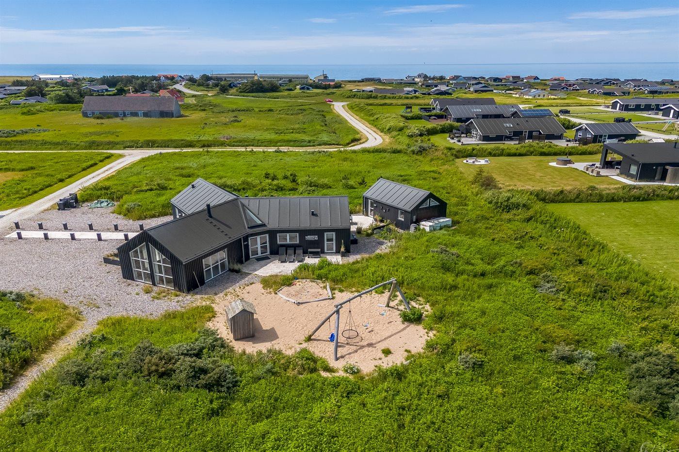 Selve sommerhuset rummer masser af hygge- og aktivitetsmuligheder med tv-område, spa, sauna samt tre terrasser med udekøkken og beachvolley-bane på den 4.800 kvadratmeter store naturgrund, der i øvrigt ligger ud til friarealer, så fasanhønerne og – kokkene samt de søde harer er her også. I er samtidig kun 450 meter fra stranden og tæt på byerne Løkken og Lønstrup, særegne naturoplevelser som Rubjerg Fyr og den vandrende Sandmile, de høje spetakulære skrænter med huse og veje der styrter i havet, samt familieattraktioner som Fårup Sommerland, Skallerup Klit, og Action House.