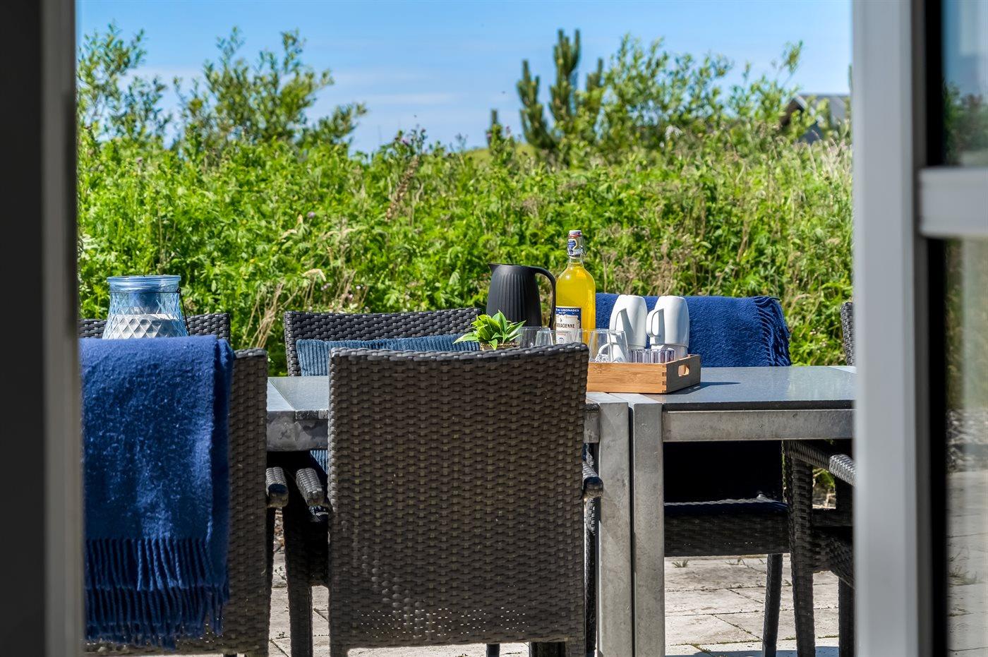 Ferieboligen er beliggende på en 4800 m² stor naturgrund. Der er 450 m til havet. Nærmeste forretning er beliggende i en afstand af 6000 m. Til ferieboligen hører 160 m² terrasseareal. Sandkasse. Beachvolley. Fodboldmål. Bålsted. Parkering ved ferieboligen.