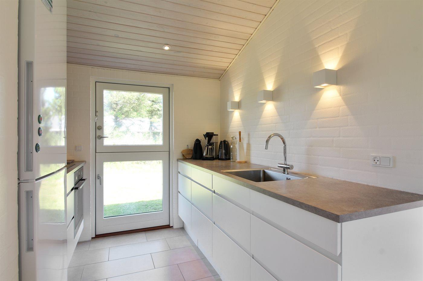 Køkkenet er udstyret med 1 køleskab. Der er 4 keramiske kogeplader, varmluftovn samt opvaskemaskine.