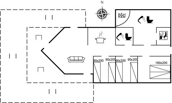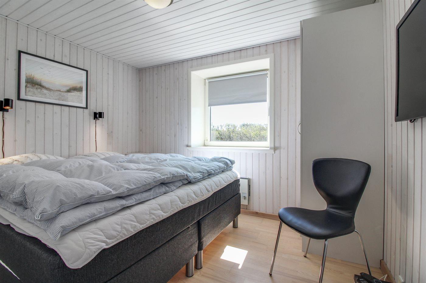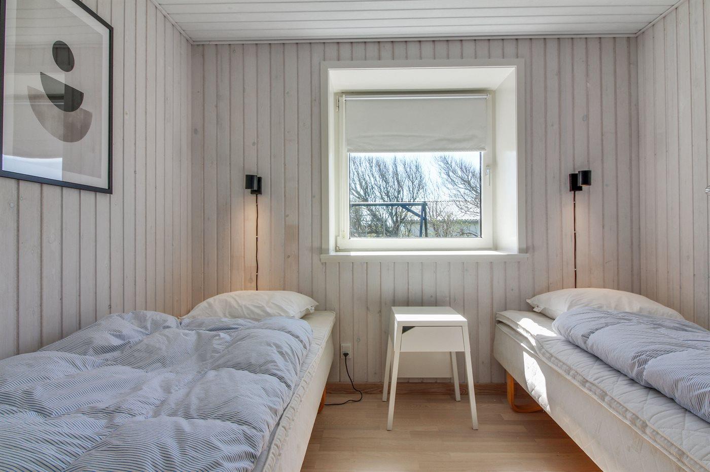 Der er i alt 3 soveværelser. Sovepladserne fordeler sig på: 2 sovepladser i dobbeltseng. 4 sovepladser i enkeltsenge. Derudover er der 1 stk. barneseng.