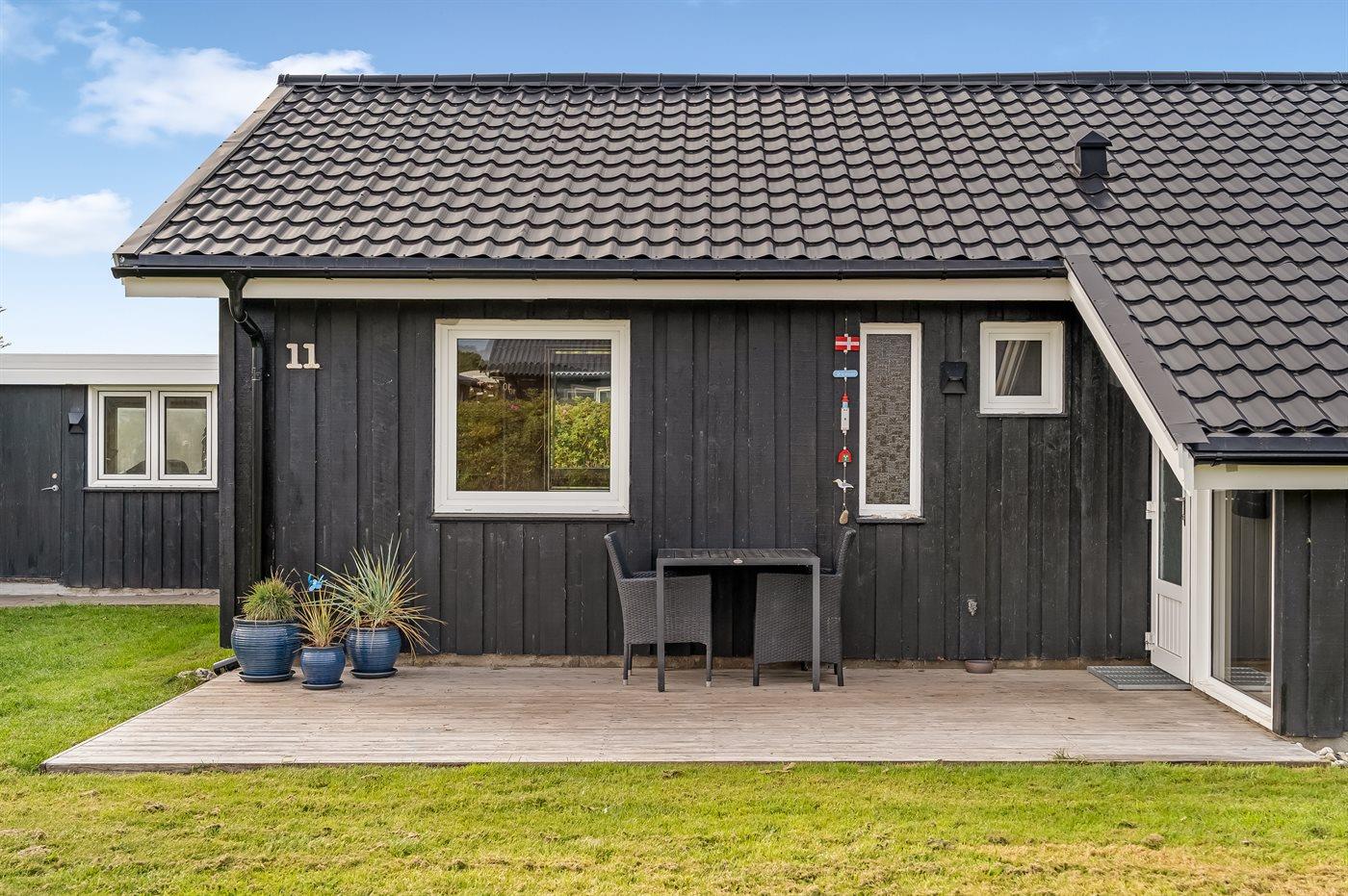 Velholdt sommerhus beliggende på en lukket vej i et naturskønt område, der er kendt for sin stejle kyststrækning langs Vesterhavet.