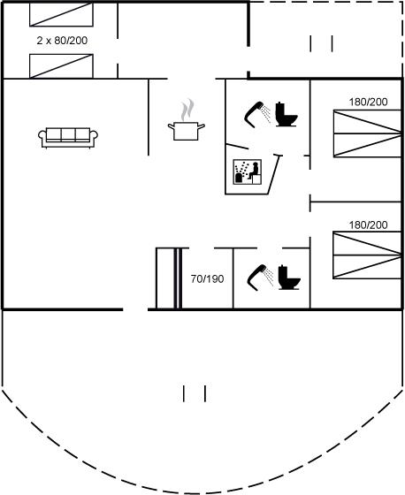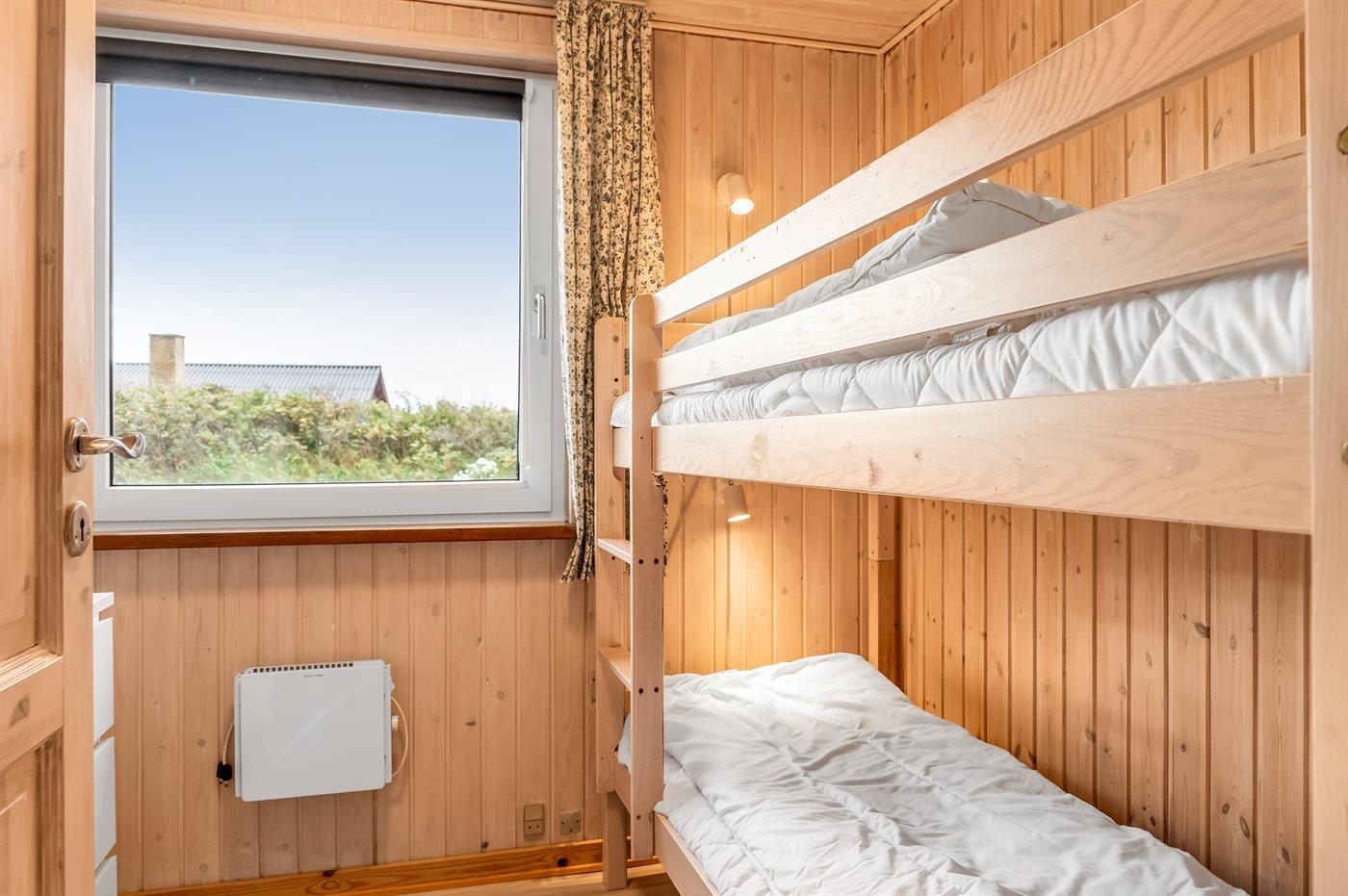 Der er i alt 4 soveværelser. Sovepladserne fordeler sig på: 4 sovepladser i dobbeltsenge. 2 sovepladser i enkeltsenge. 2 sovepladser i køjeseng. Derudover er der 1 stk. barneseng.
