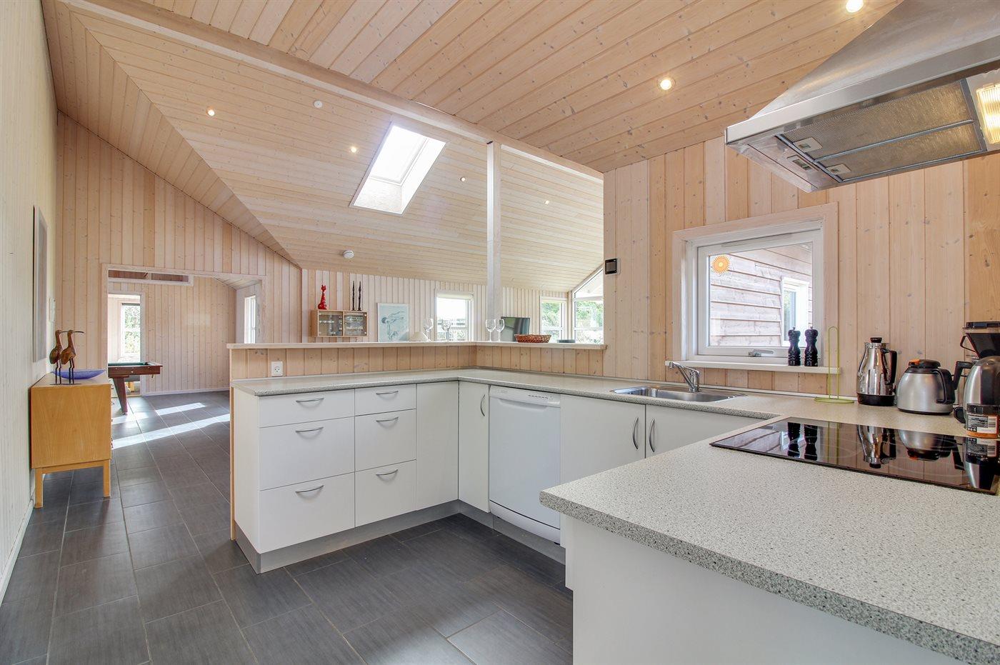 Køkkenet er udstyret med 1 køleskab. Der er 4 keramiske kogeplader, varmluftovn, mikrobølgeovn samt opvaskemaskine.