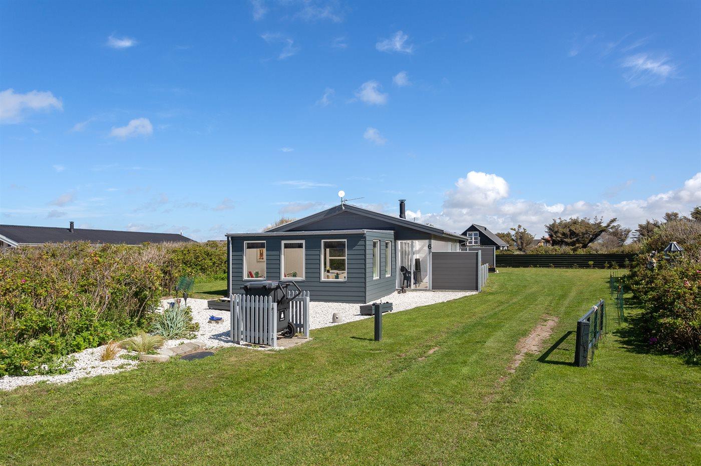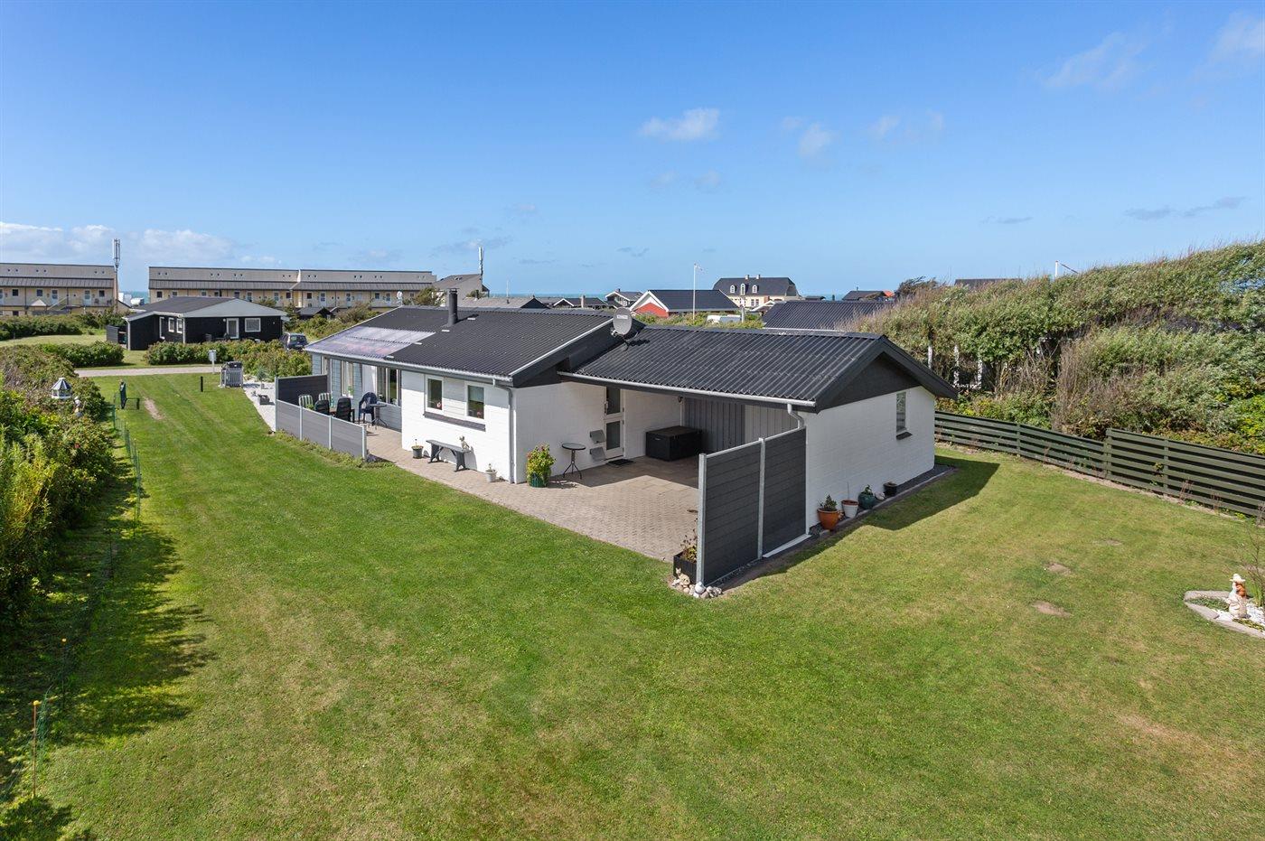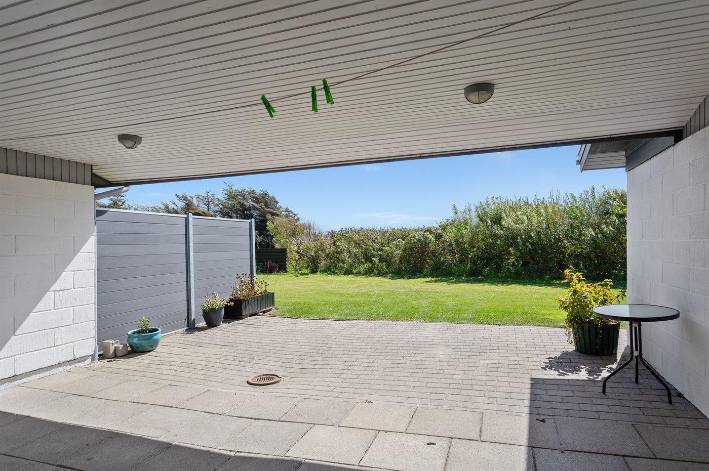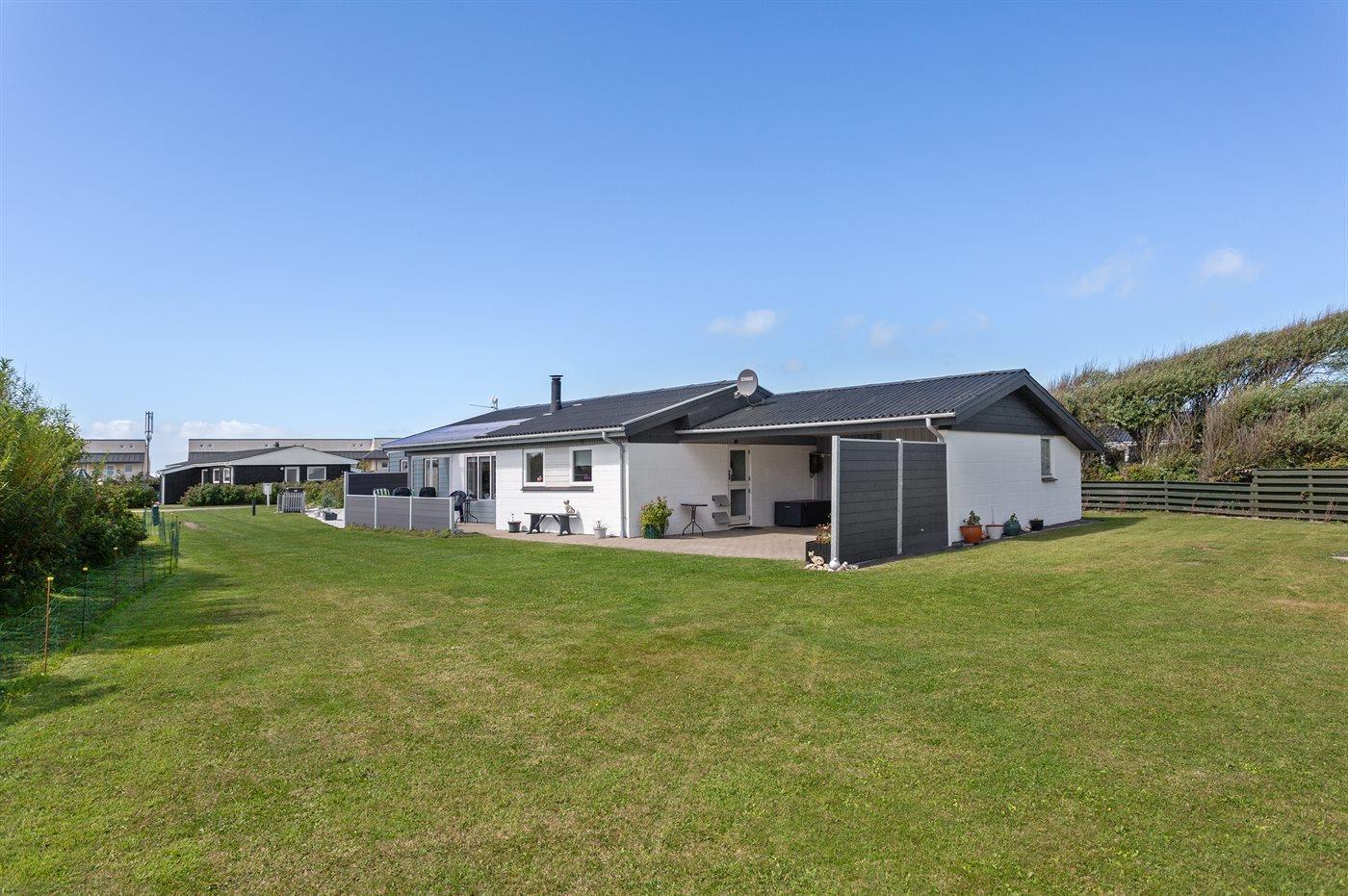 Ferieboligen er beliggende på en 1250 m² stor naturgrund. Der er 200 m til havet. Nærmeste forretning er beliggende i en afstand af 150 m. Desuden er der 10 m² overdækket terrasse. Til ferieboligen hører åbent terrasseareal. Grill til rådighed. Parkering ved ferieboligen.