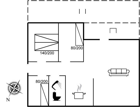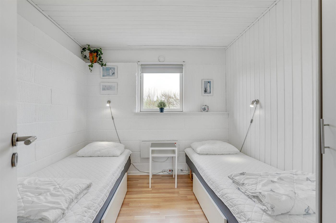 Der er i alt 3 soveværelser. Sovepladserne fordeler sig på: 2 sovepladser i dobbeltseng. 2 sovepladser i enkeltsenge.
