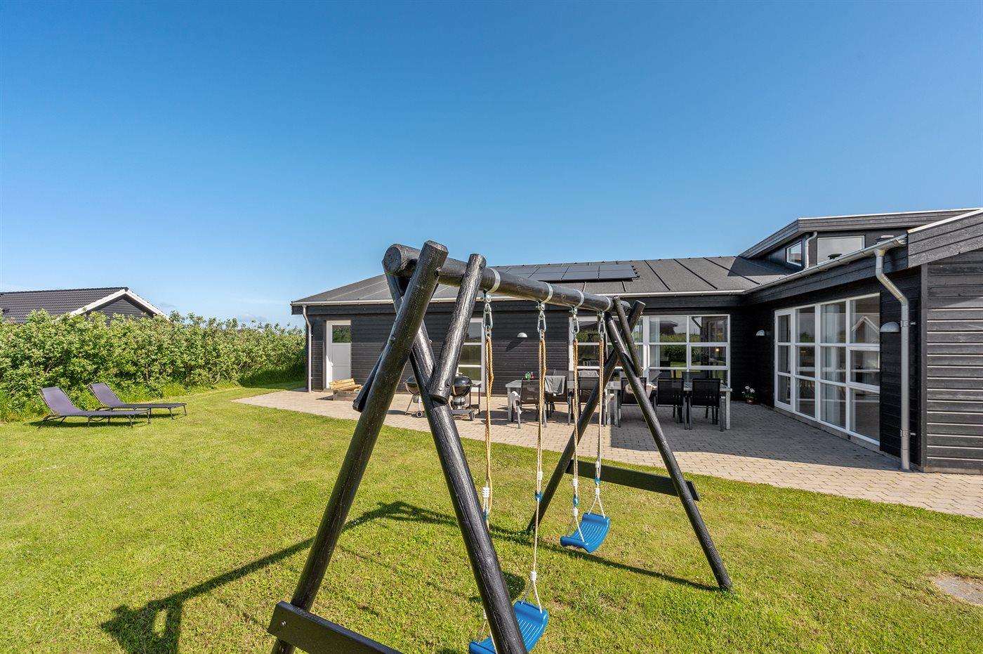 Ferieboligen er beliggende på en 2080 m² stor naturgrund. Der er 800 m til havet. Nærmeste forretning er beliggende i en afstand af 6000 m. Til ferieboligen hører 60 m² terrasseareal. Der er redskabsrum. Gynge. Sandkasse. Der er 2 grill til rådighed. Der er installeret stik til opladning af elbil. Type 2 stik. Parkering ved ferieboligen.