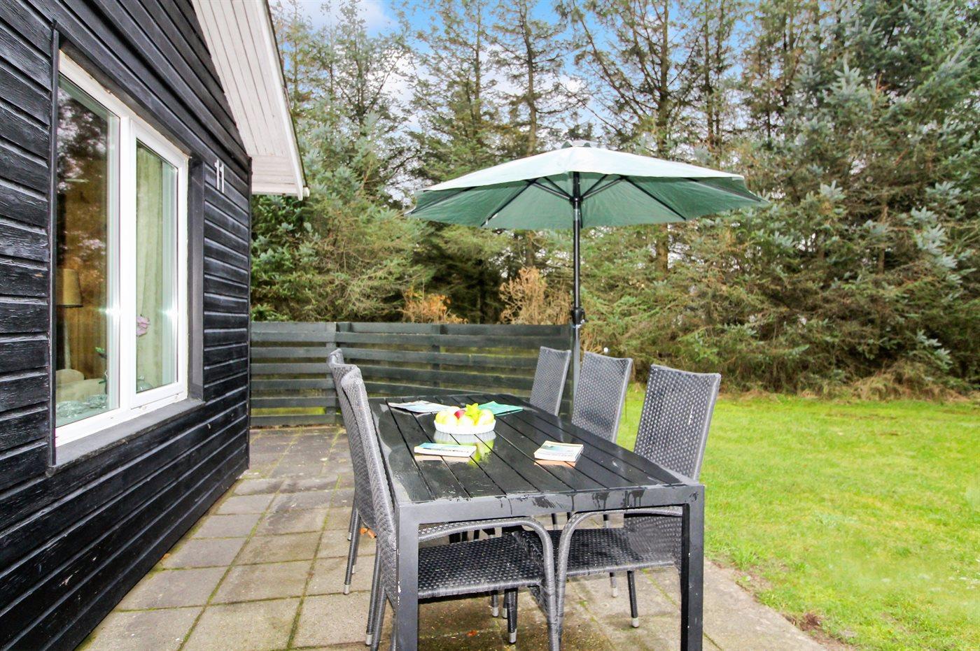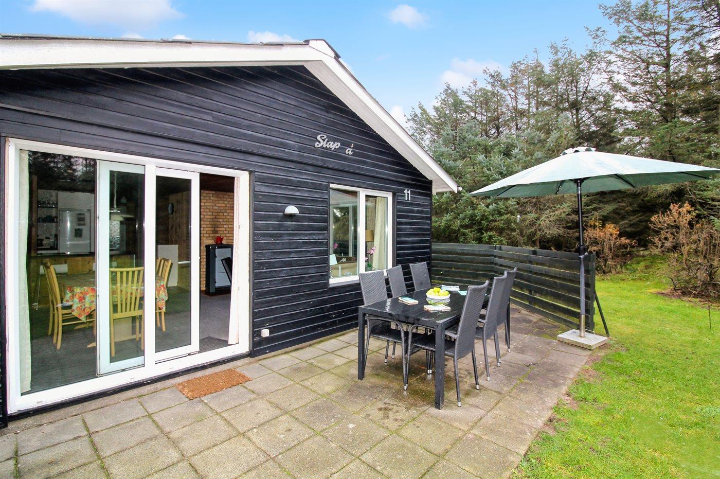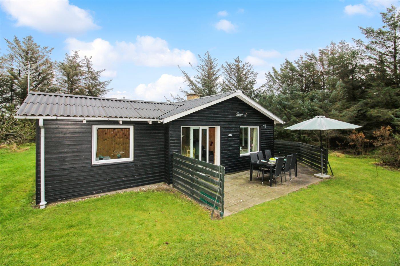 Hyggeligt sommerhus i rolige omgivelser nær havet i Løkken med terrasse, brændeovn og internet.
