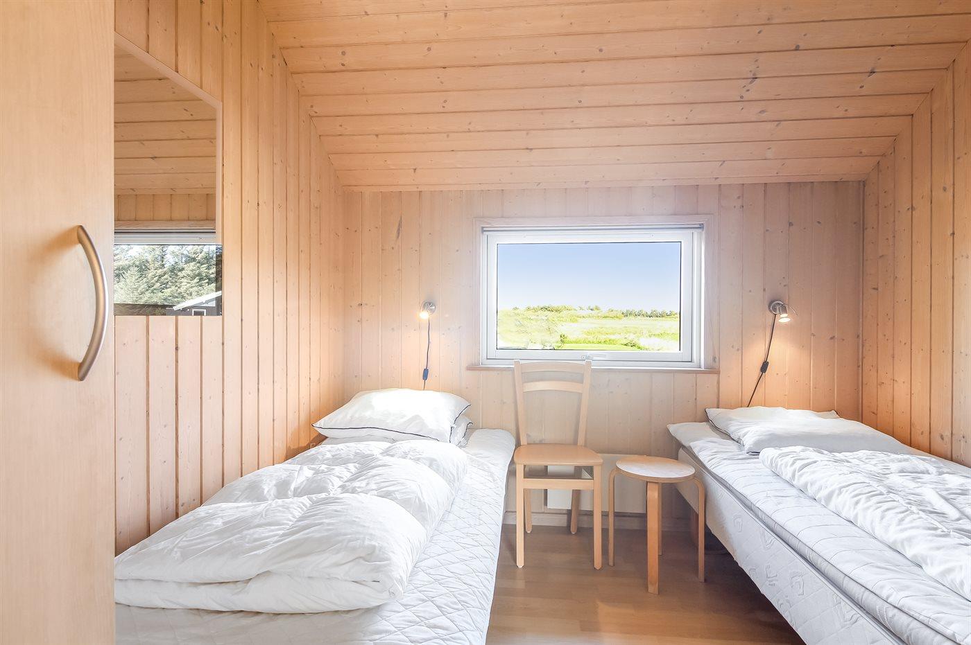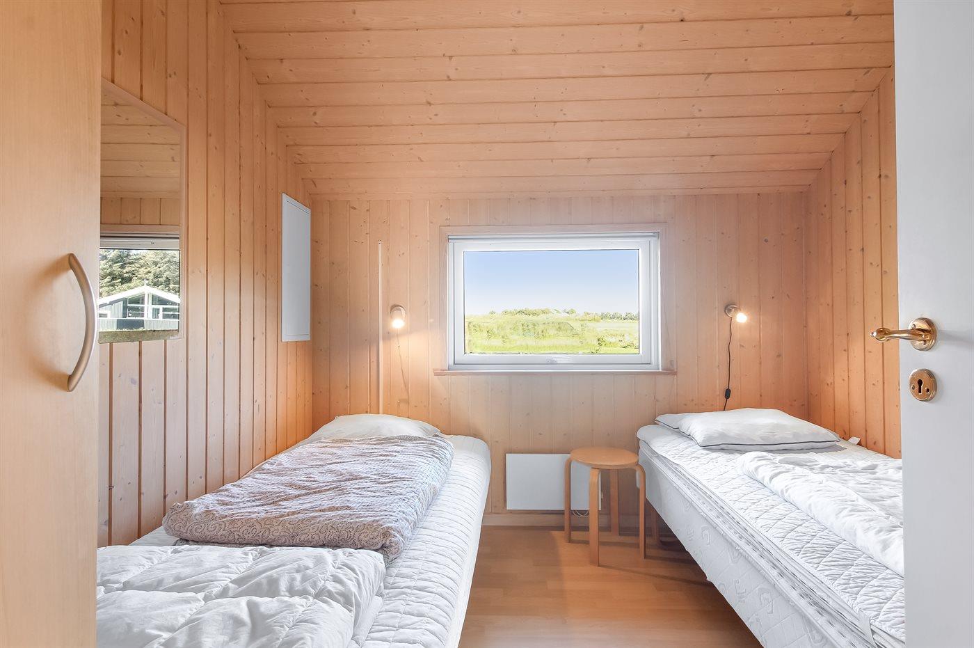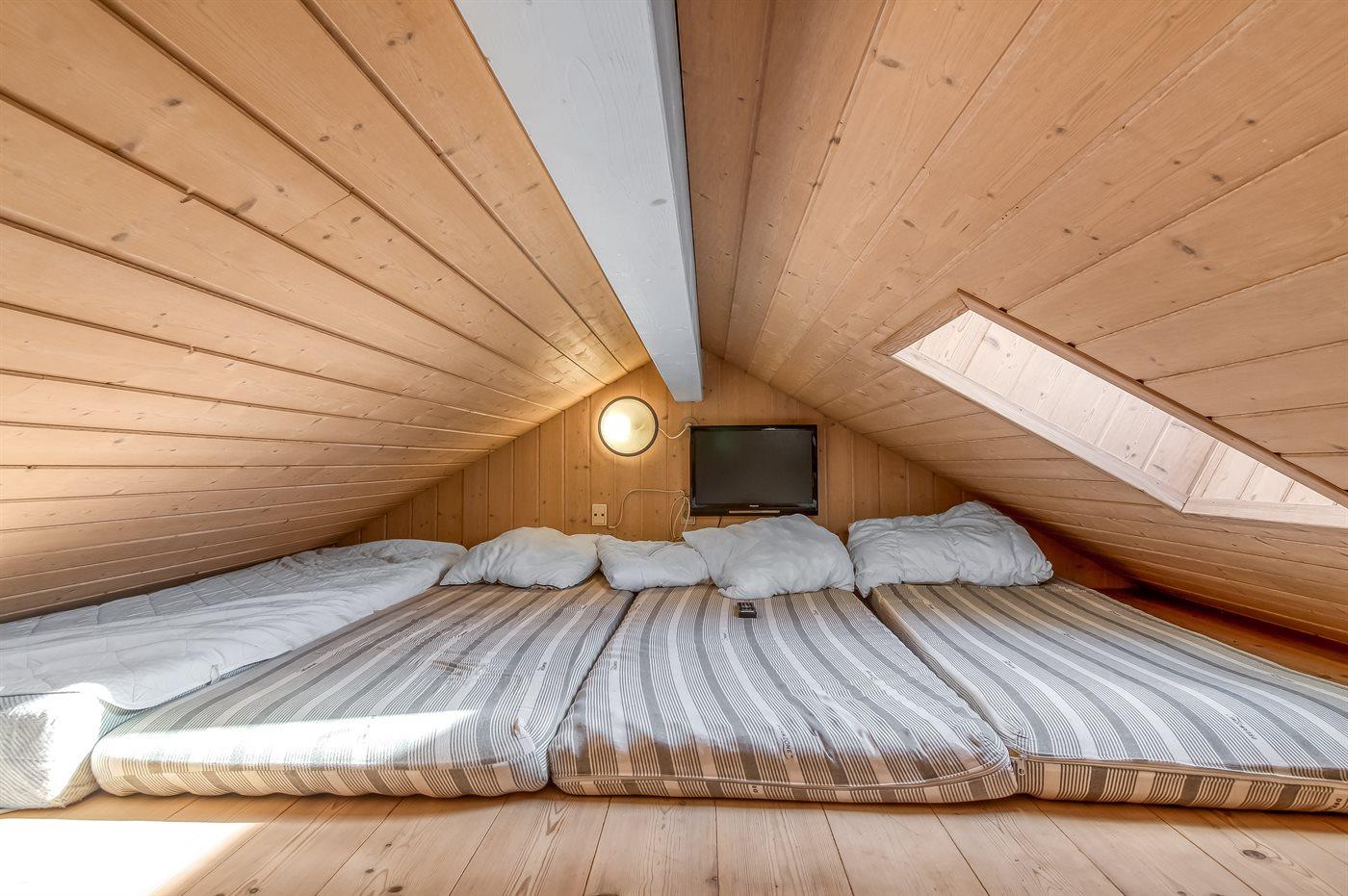 Der er i alt 4 soveværelser. Sovepladserne fordeler sig på: 4 sovepladser i dobbeltsenge. 4 sovepladser i enkeltsenge. 4 sovepladser på madrasser. 4 af disse sovepladser befinder sig på husets hems.