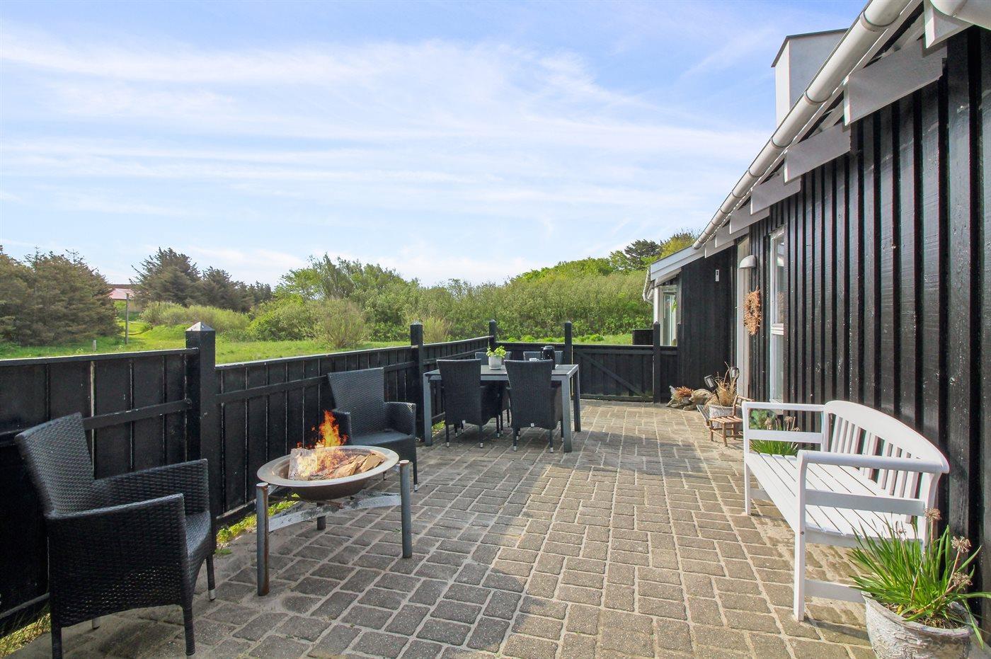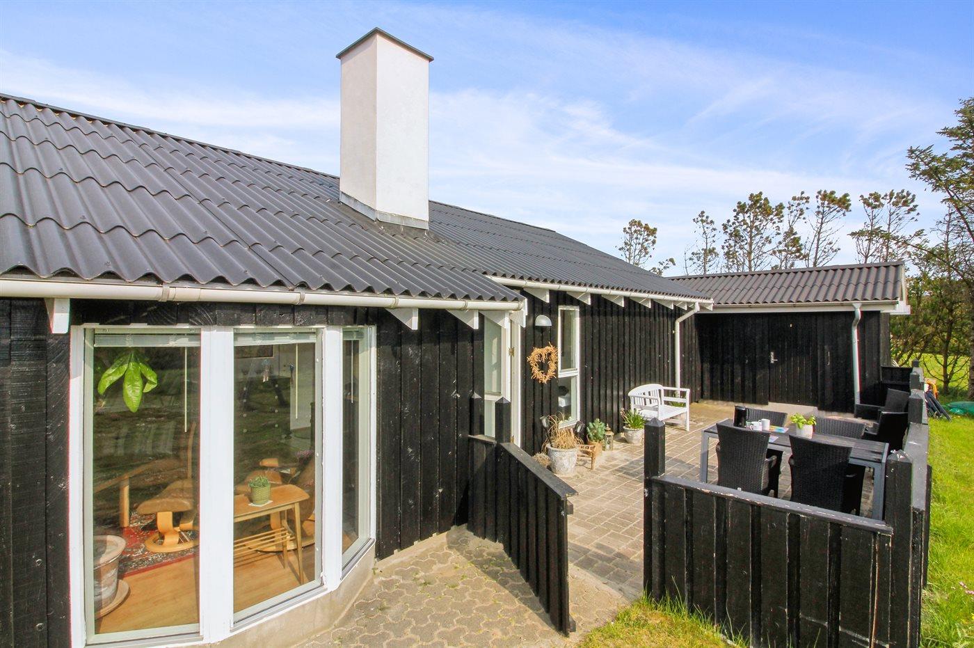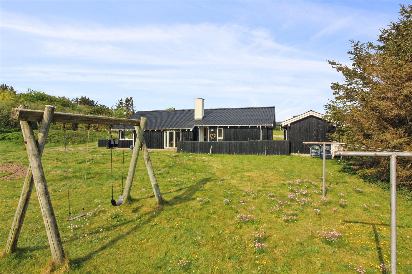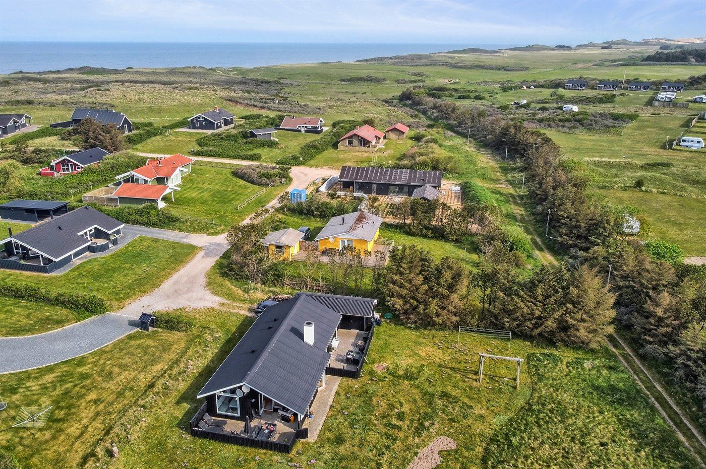 Ferieboligen er beliggende på en 911 m² stor naturgrund. Der er 400 m til havet. Der er en sø i en afstand af 1400 m. Nærmeste forretning er beliggende i en afstand af 1400 m. Til ferieboligen hører 40 m² terrasseareal. Desuden er der 10 m² overdækket terrasse. Heraf i alt 25 m² lukket terrasse. Gynge. Bålsted. Grill til rådighed. Der er carport til rådighed. Parkering ved ferieboligen.