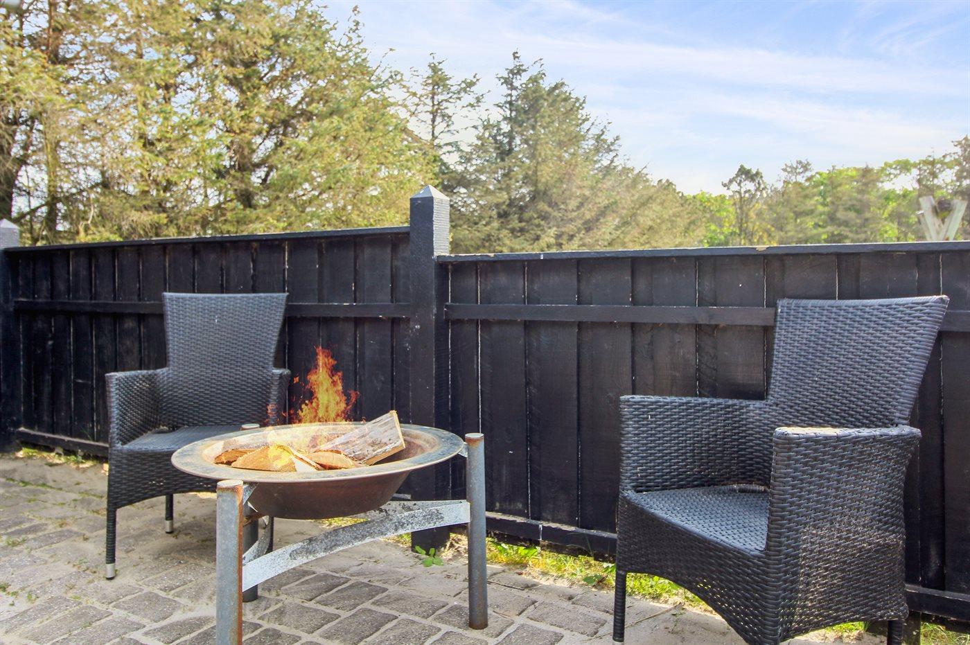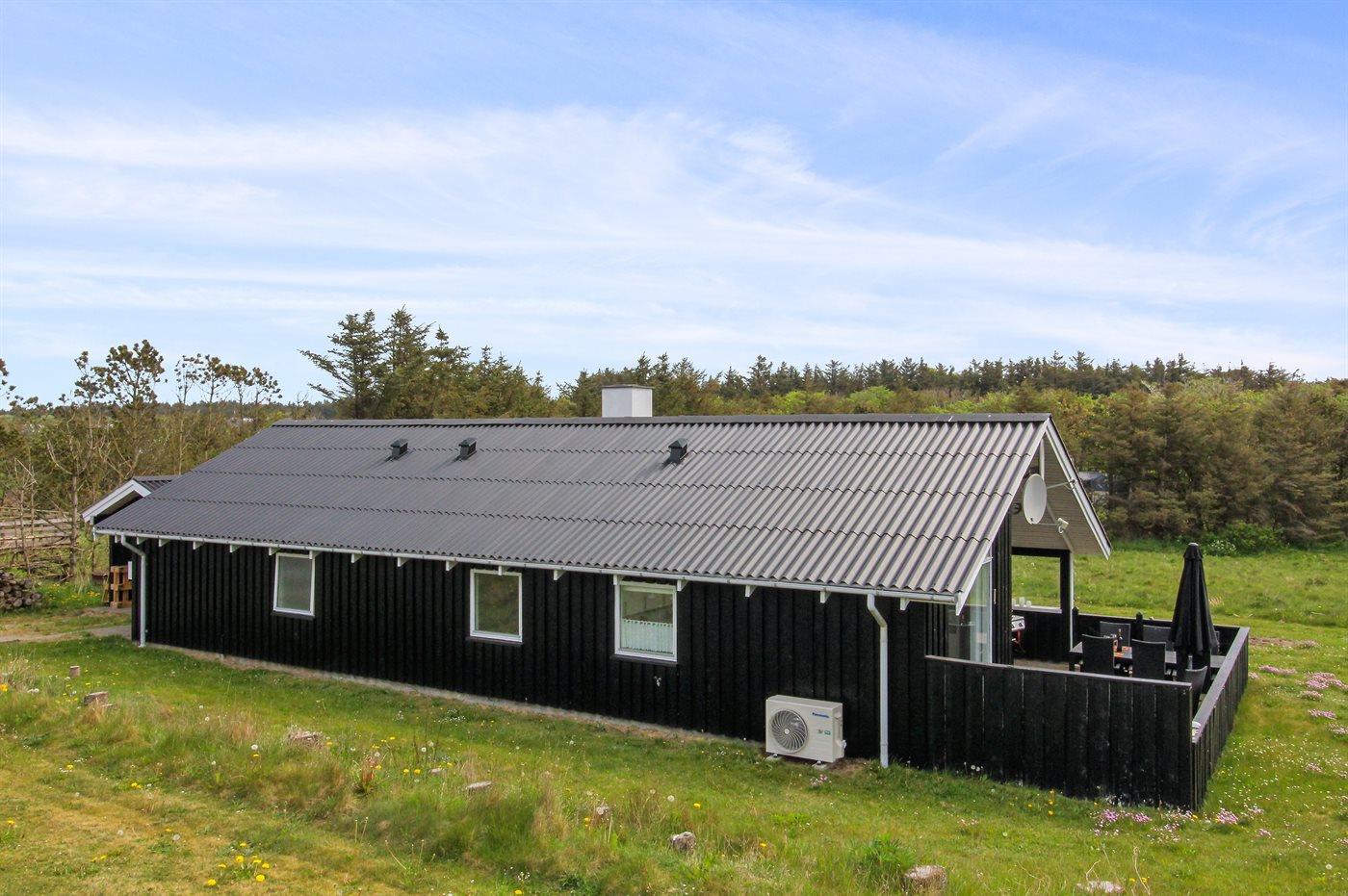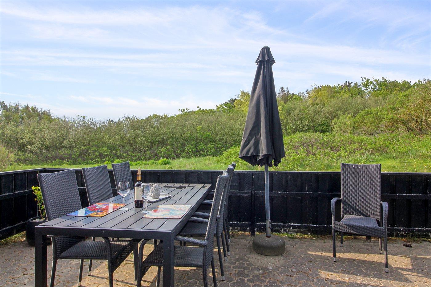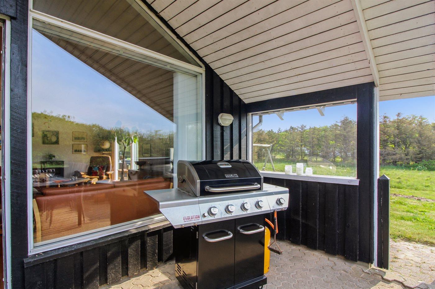Ferieboligen er beliggende på en 911 m² stor naturgrund. Der er 400 m til havet. Der er en sø i en afstand af 1400 m. Nærmeste forretning er beliggende i en afstand af 1400 m. Til ferieboligen hører 40 m² terrasseareal. Desuden er der 10 m² overdækket terrasse. Heraf i alt 25 m² lukket terrasse. Gynge. Bålsted. Grill til rådighed. Der er carport til rådighed. Parkering ved ferieboligen.