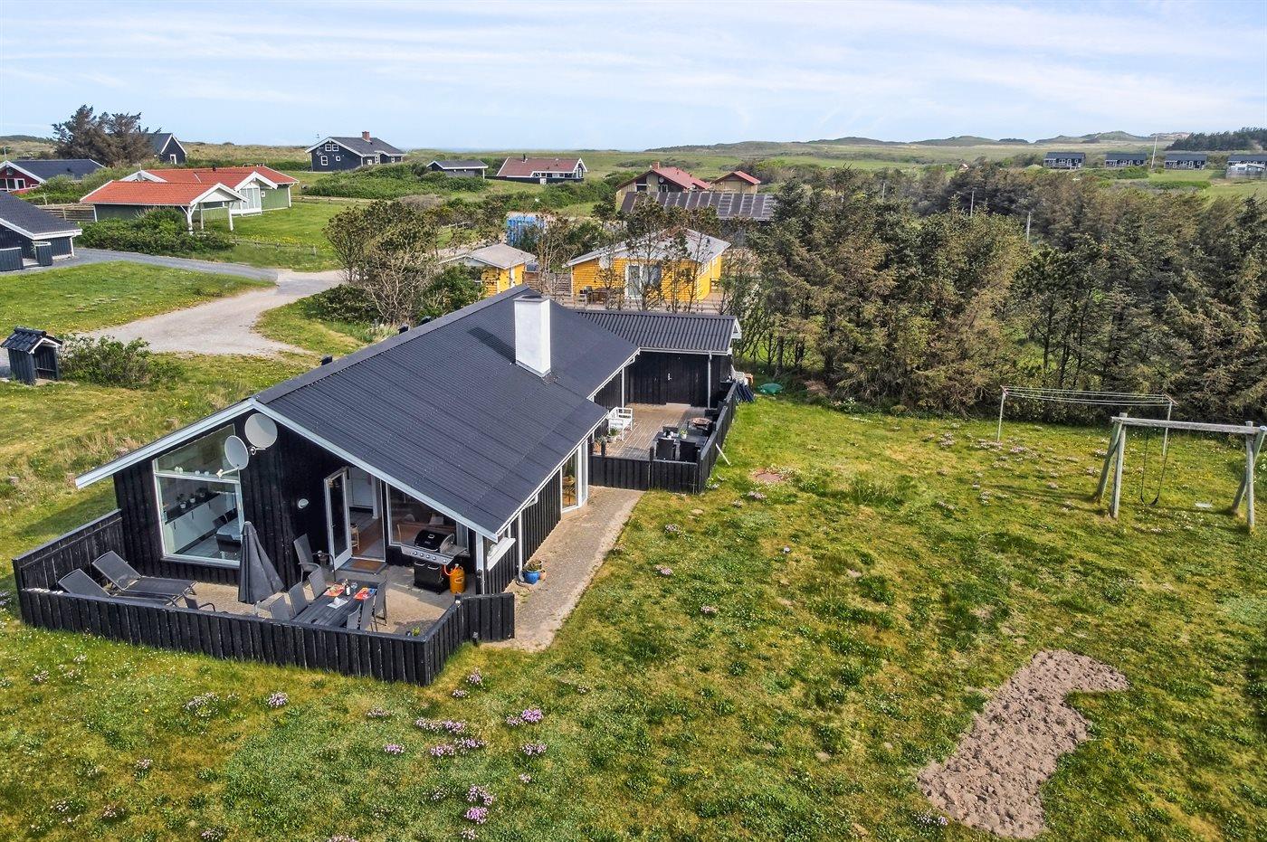 Et velindrettet sommerhus beliggende for enden af en lukket vej i et roligt og naturskønt område nær stranden og Vesterhavet.
