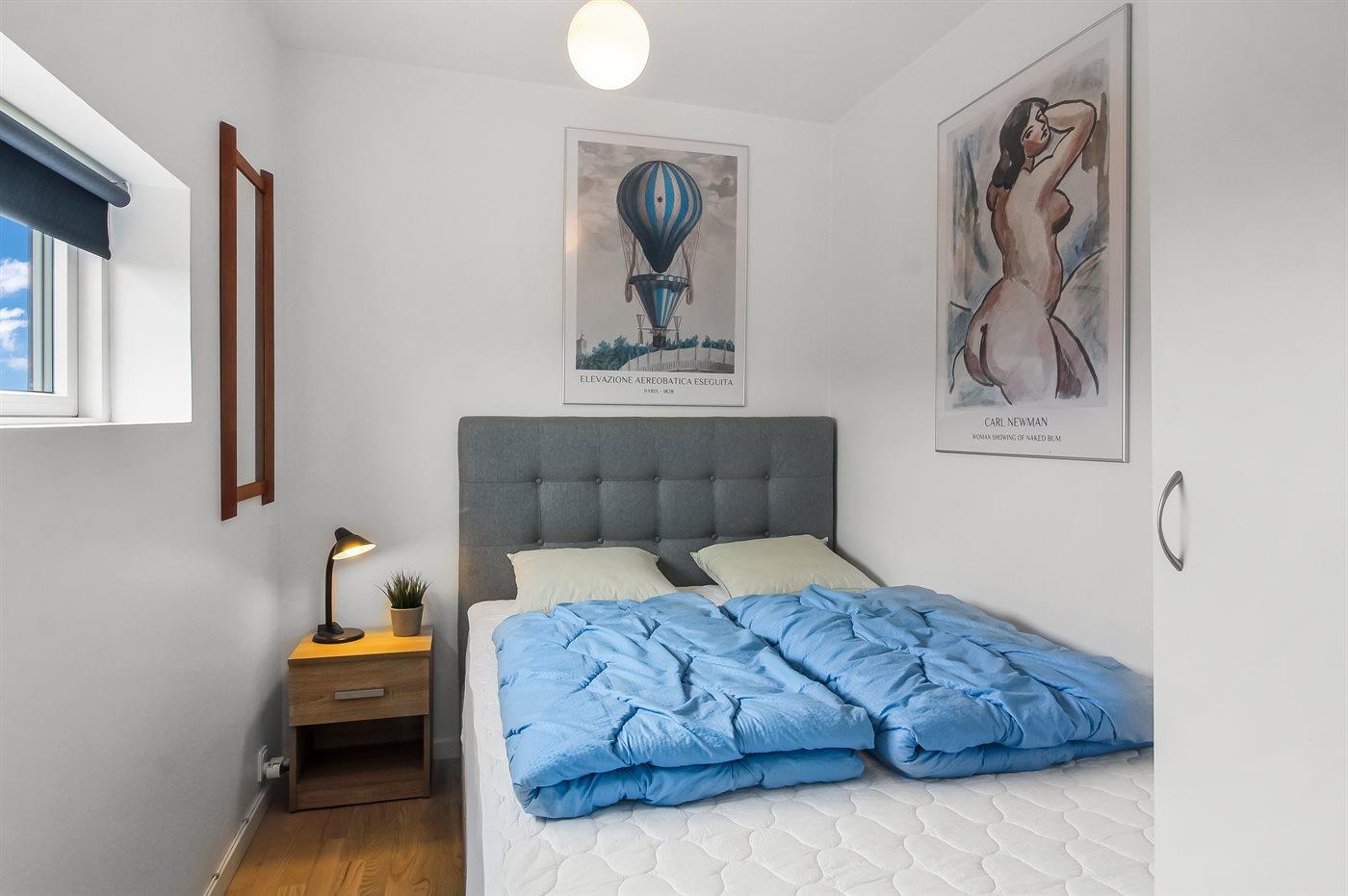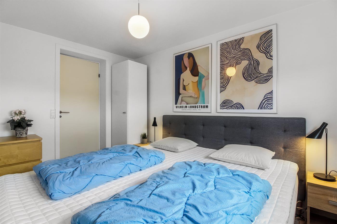 Der er i alt 3 soveværelser. Sovepladserne fordeler sig på: 4 sovepladser i dobbeltsenge. 2 sovepladser i køjeseng. Derudover er der 1 stk. barneseng.