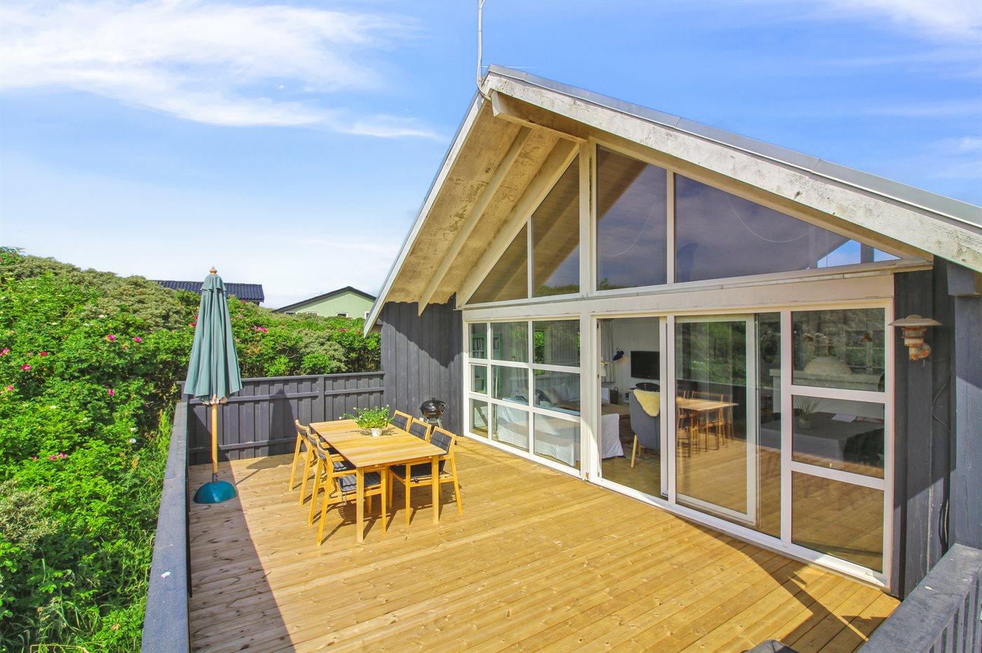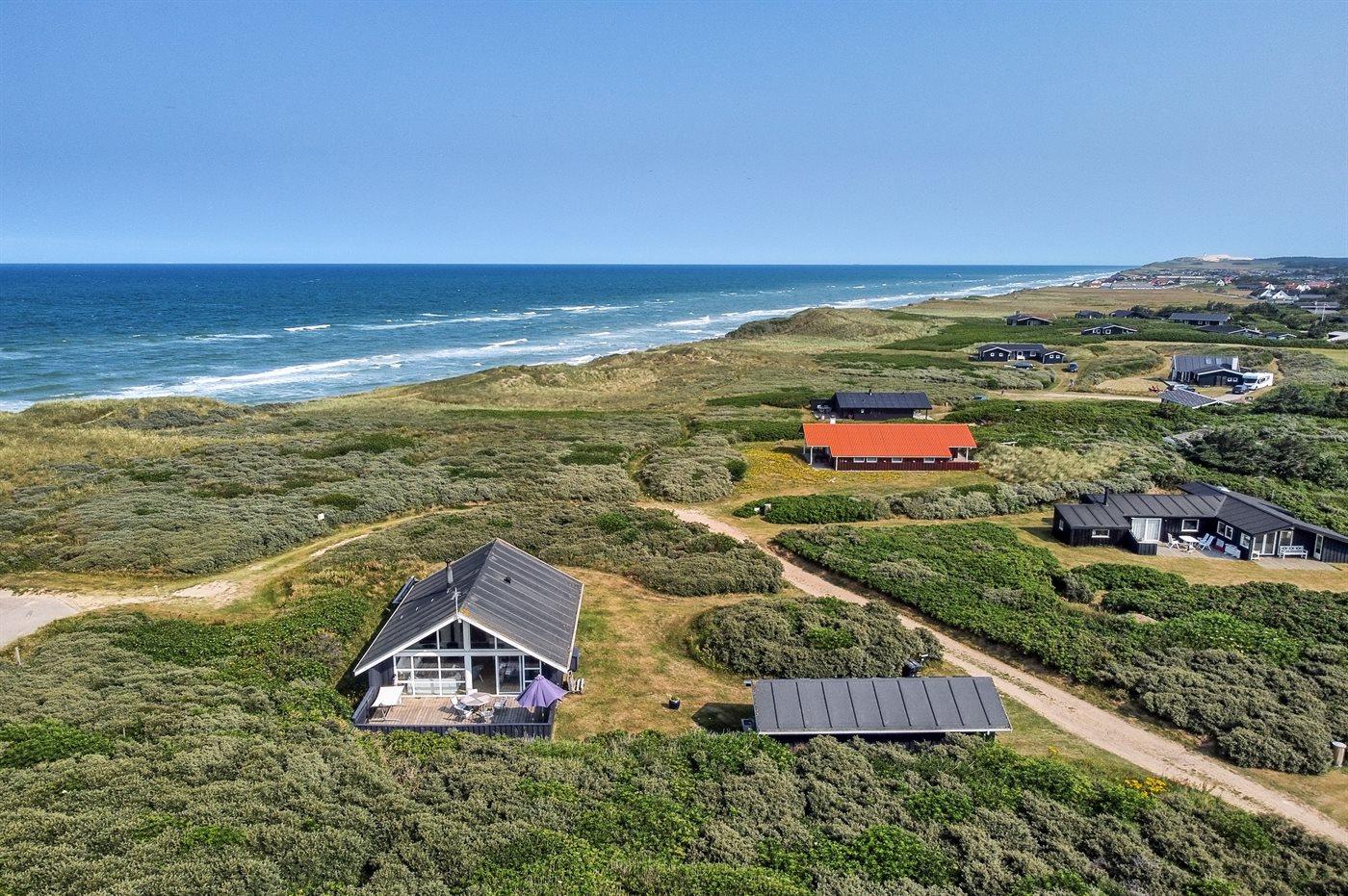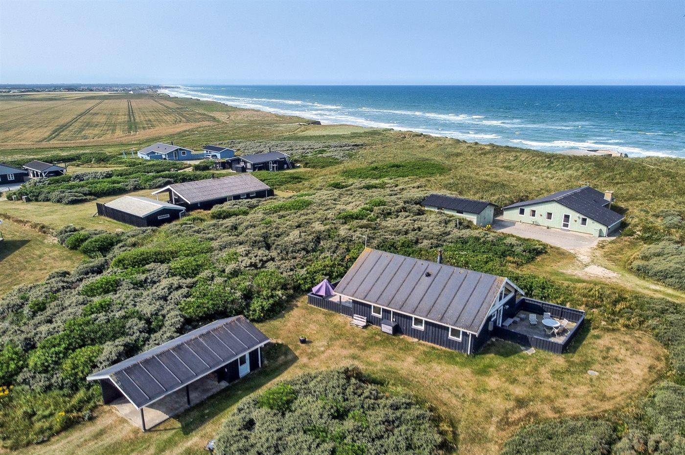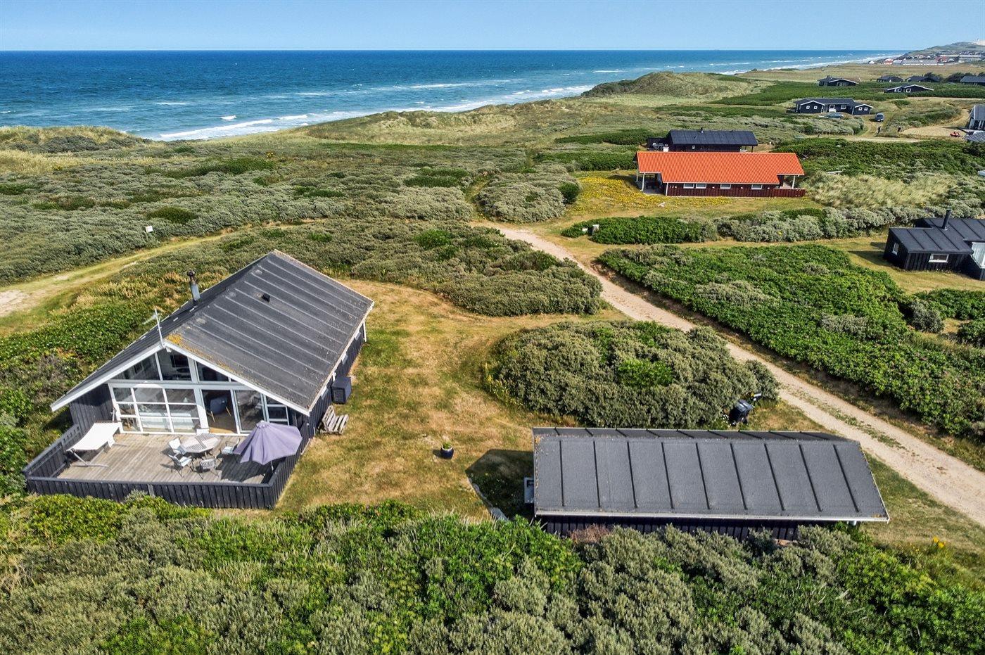 Velholdt sommerhus beliggende på klitgrund, kun 100 m. fra Vesterhavet. På grundens højeste punkt kan man nyde havudsigten.