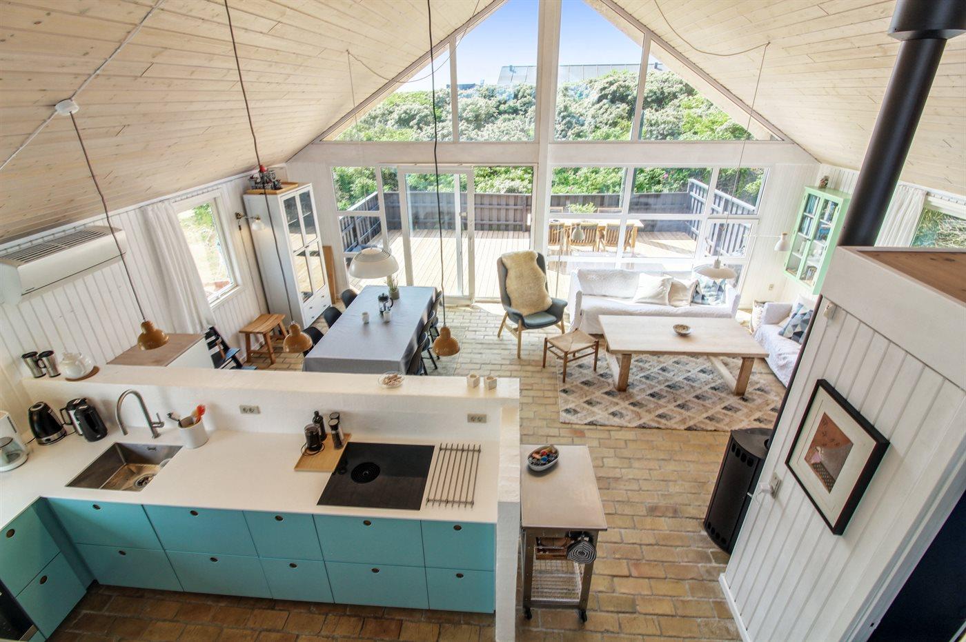 Hyggeligt sommerhus på klitgrund med havudsigt kun 100 meter fra Vesterhavet, perfekt til en afslappende ferie.
