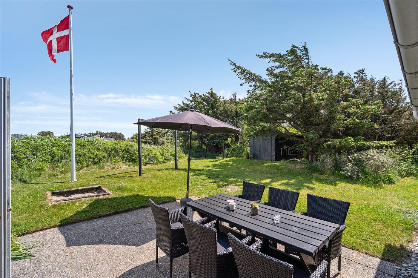 Ferieboligen er beliggende på en 1600 m² stor naturgrund. Der er 150 m til havet. Nærmeste forretning er beliggende i en afstand af 6000 m. Til ferieboligen hører 82 m² terrasseareal. Gynge. Sandkasse. Parkering ved ferieboligen.