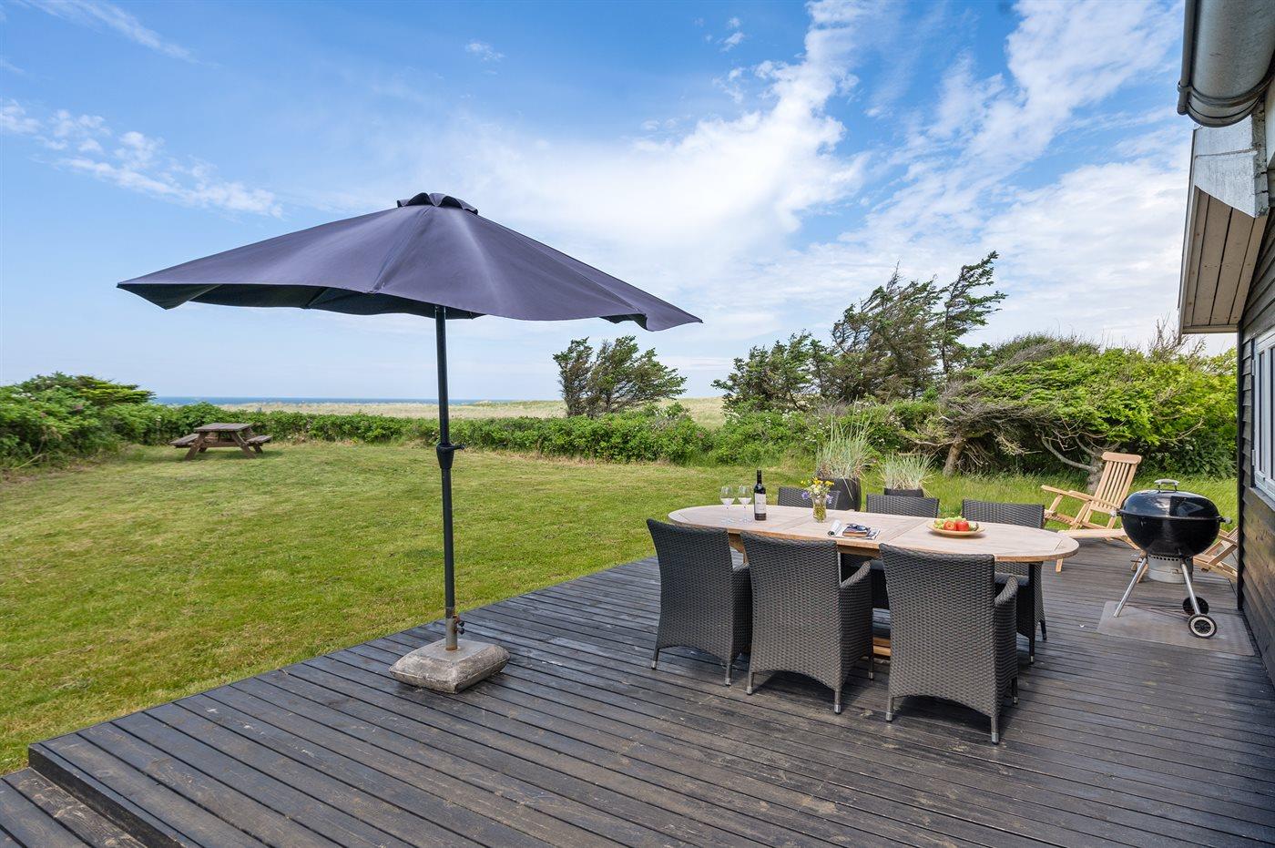 Sommerhus i 1. klitrække og med havudsigt fra huset og grunden. Huset er særdeles velbeliggende med udsigt til kuperet, delvis marehalmbeplantet naturområde. Stedet indbyder til lange vandreture ad de anlagte naturstier på egnen.