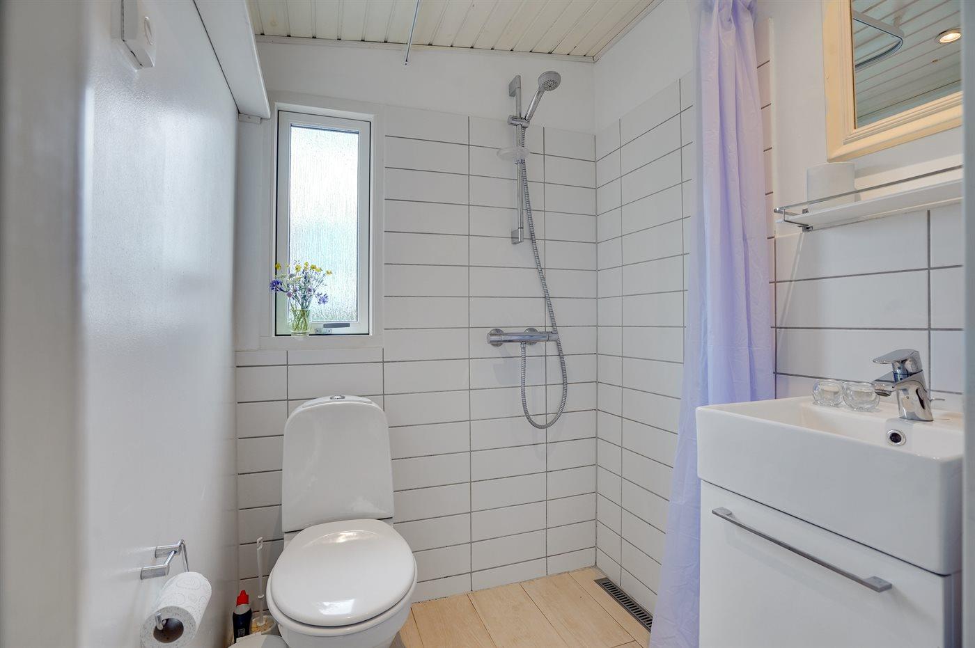 Der er 1 badeværelse med bruseniche og 1 toilet.. Der er gulvvarme på 1 badeværelse.