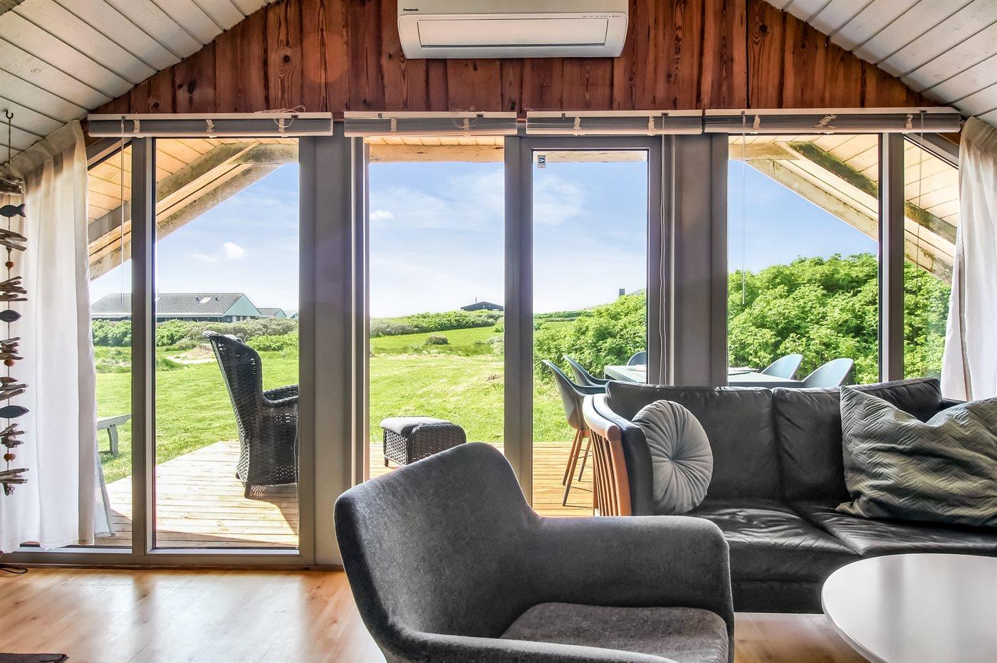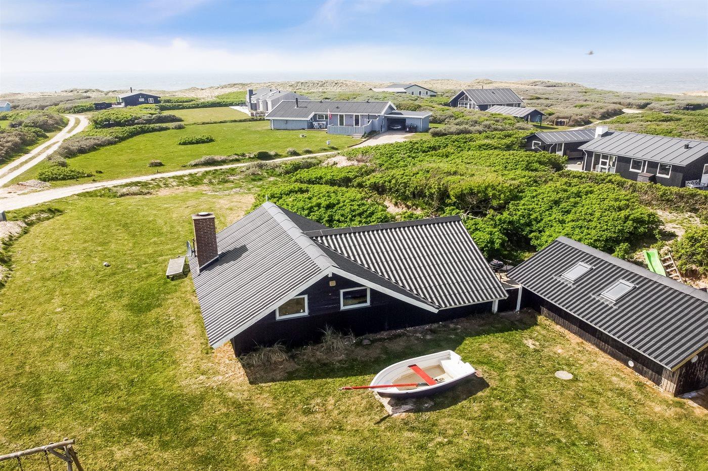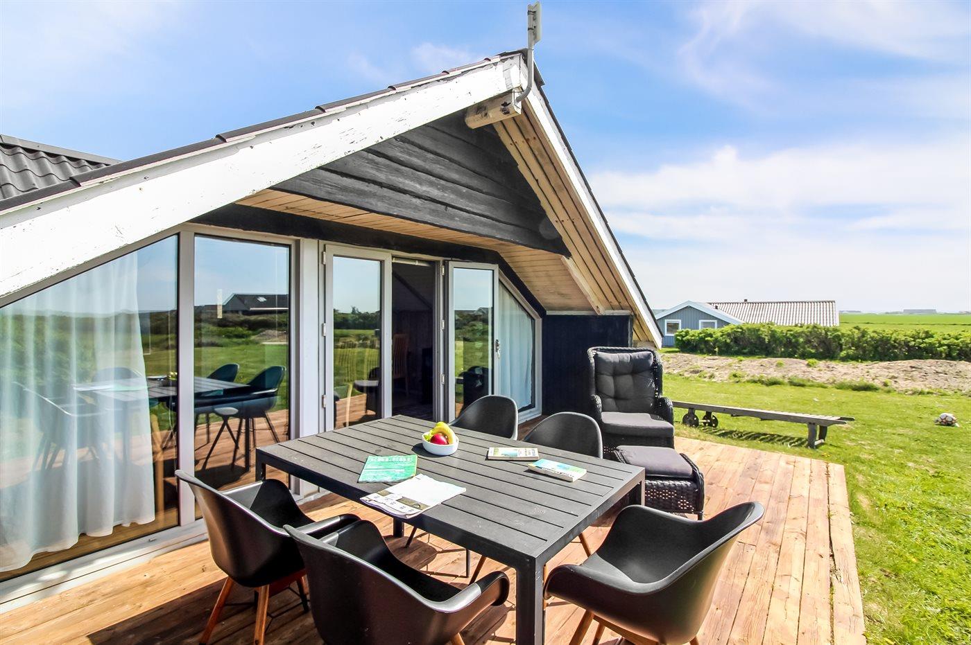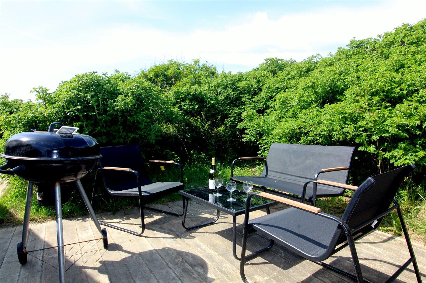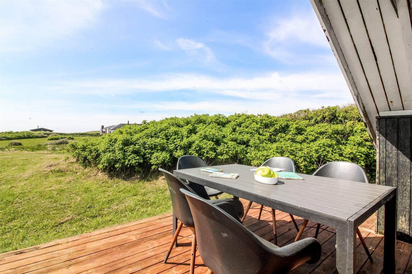 Der findes både nord- og vestvendte terrasser, og på solrige dage har du gode muligheder, for finde en plads med læ, hvor du kan nyde en kop the eller kaffe og bare slappe af. Vil du gerne nyde udsigten så har ejer anlagt en lille udsigtsplads i klitten – her kan du betragte den skønne udsigt over området og havet.