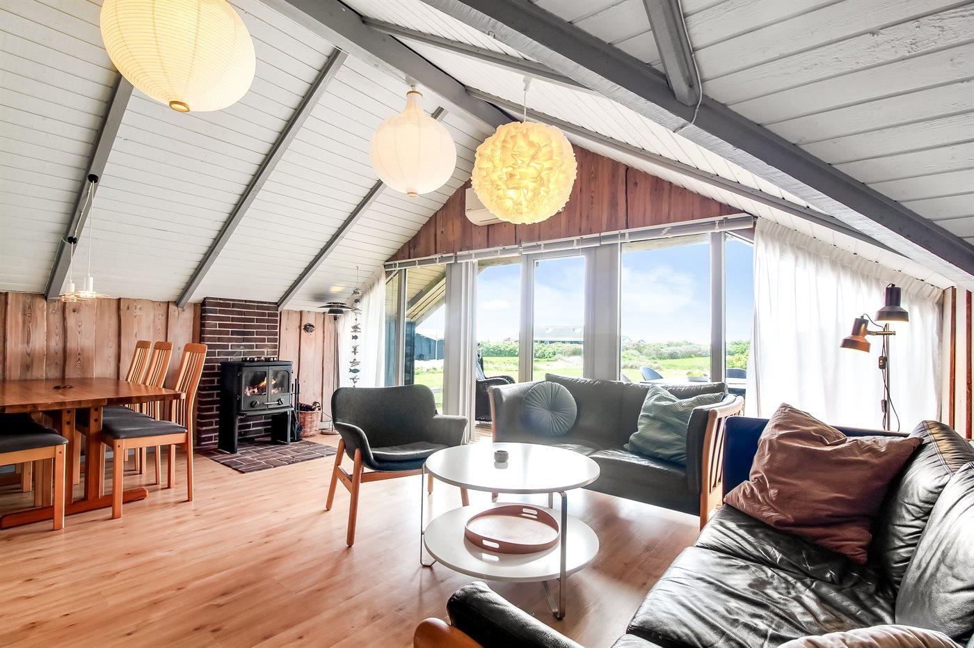 På de kølige dage kan du tænde op i brændeovnen, mærke varmen brede sig og hygge dig med en god bog